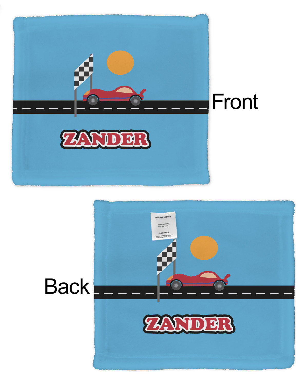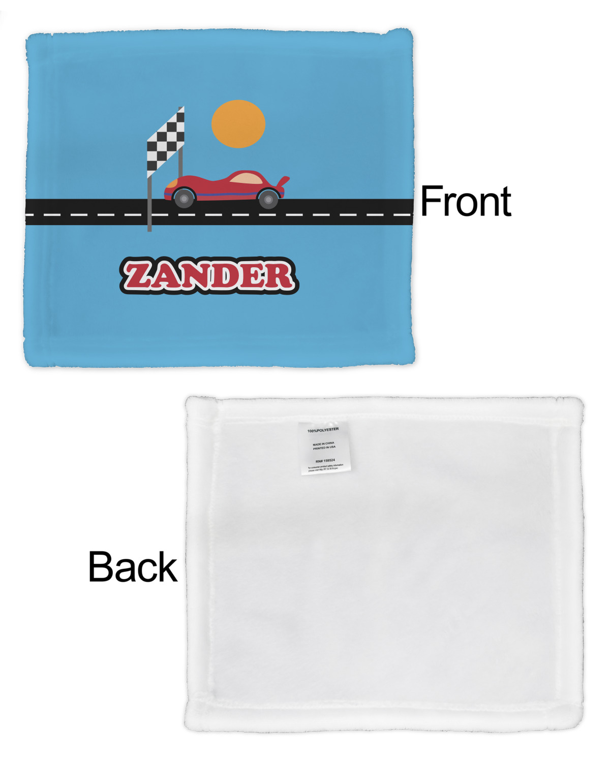 Crafted from an ultra soft fleece, these lovey blankets are the perfect, portable size to follow your child on any of his or her adventures. The plush texture also makes them ideal for naptime. Each personalized baby blanket measures at approximately 12 by 11 inches.