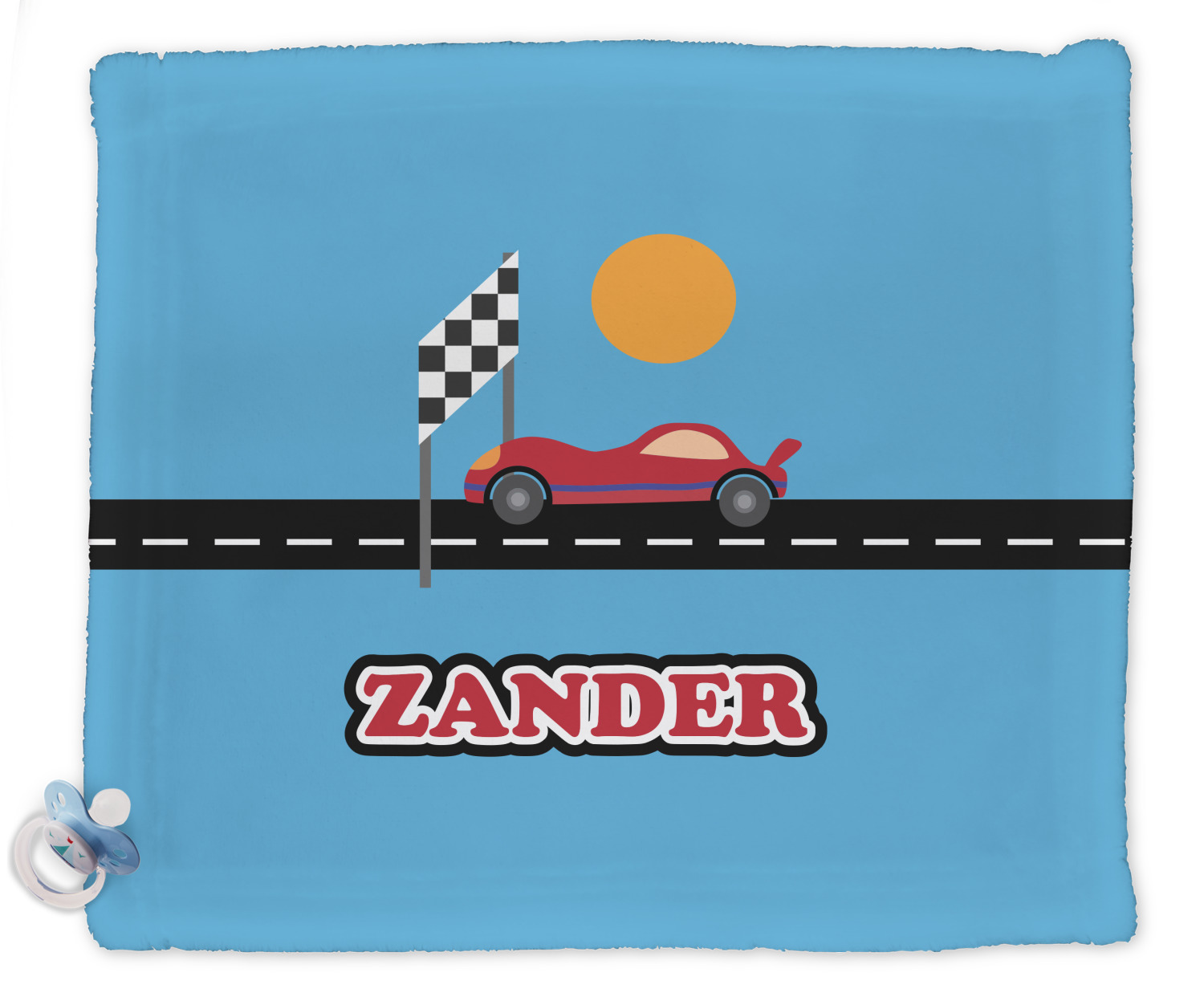 Does your little guy dream of being a race car driver? Make his eyes light up with his very own race car! Our fun red race car is on the track and heading for 1st place under the checkered banner. The car scene is set on a beautiful blue background with the bright sun looking down.