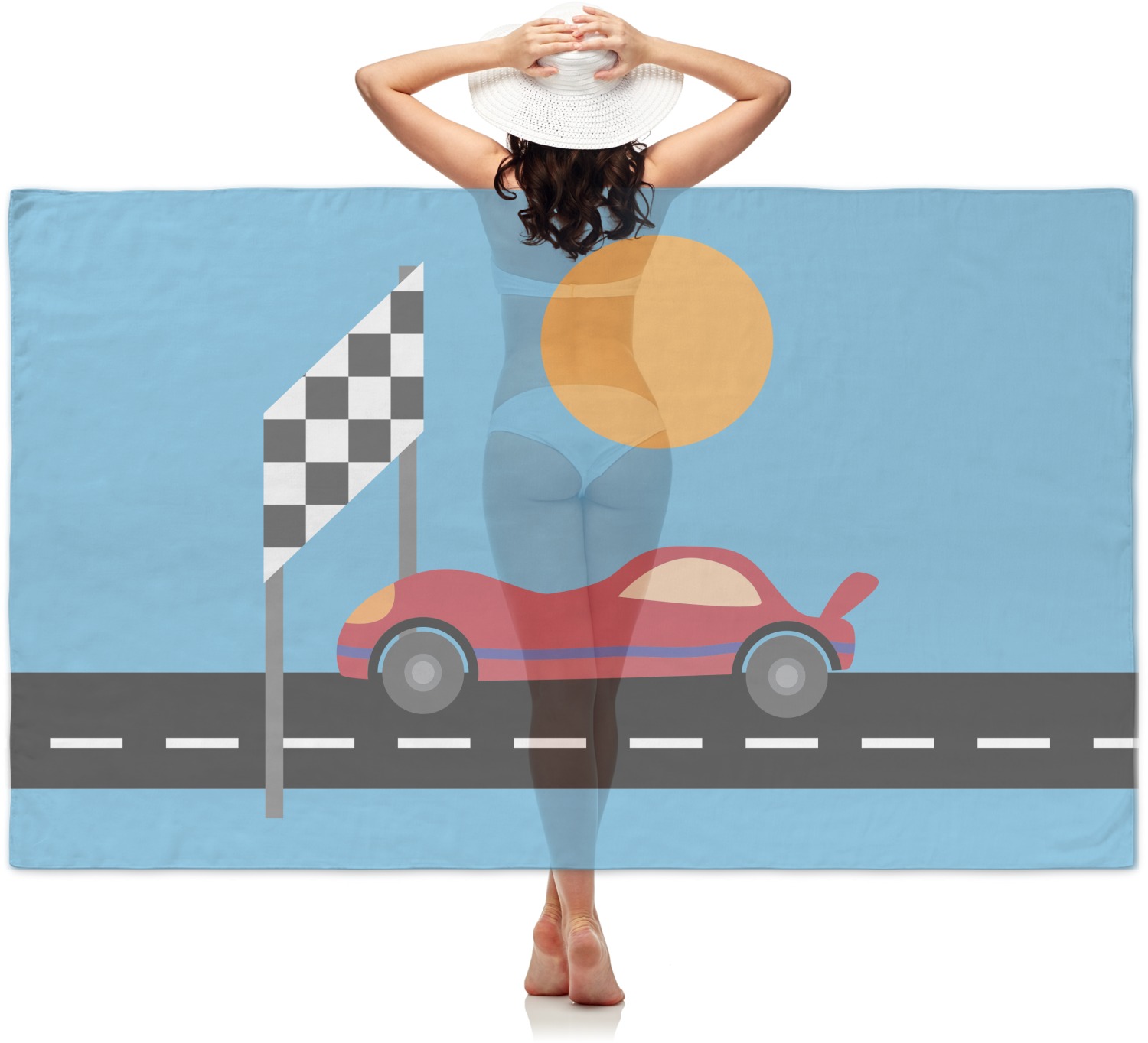 Does your little guy dream of being a race car driver? Make his eyes light up with his very own race car! Our fun red race car is on the track and heading for 1st place under the checkered banner. The car scene is set on a beautiful blue background with the bright sun looking down.