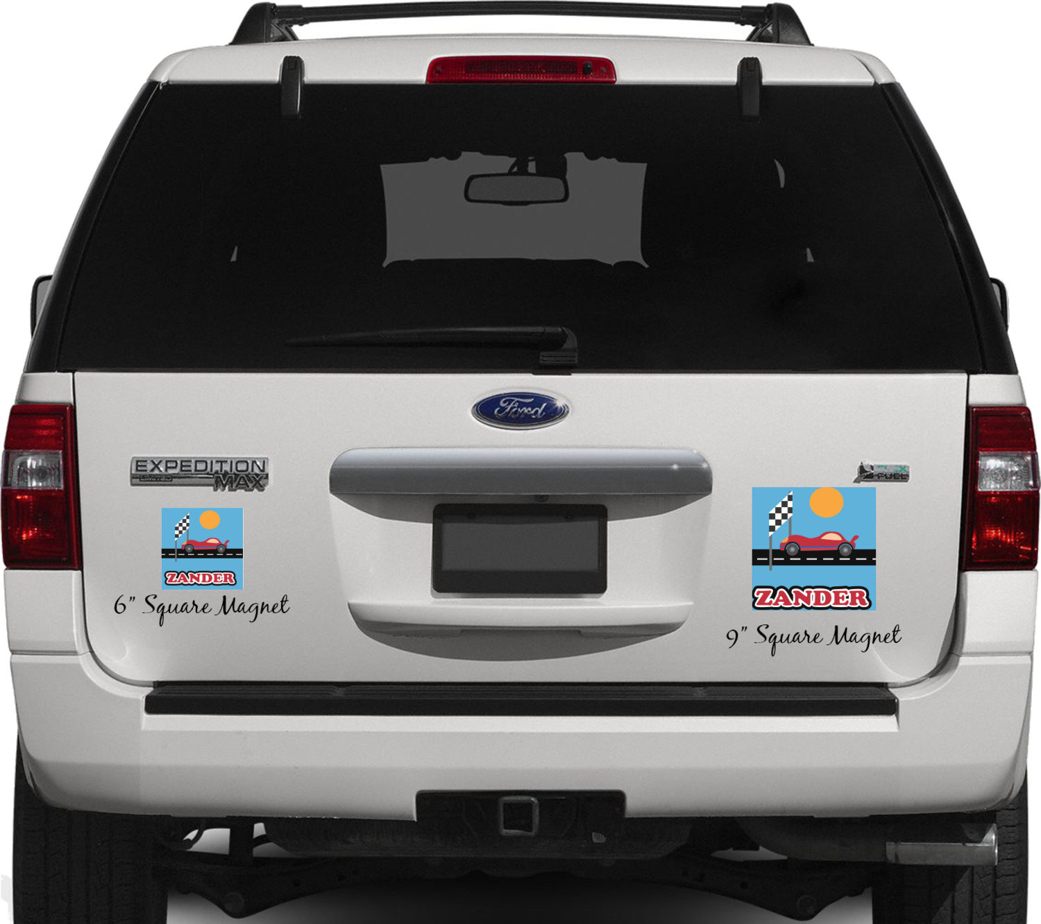 Your personalized car magnets are available for purchase in two shapes and two sizes. We carry round and square editions; each shape can either be 6 by 6 inches, or 10 by 10 inches, depending on your needs. Both versions are 1 millimeter thick, which is considered, within the industry, as the ideal thickness for automobile magnets. The magnetic car decals will adhere to any smooth, metal surface of your cars body, such as the trunk door or a side panel. However, please note that some vehicles are constructed from fiberglass bodies, which prevents the adhesion of anything magnetic. We advise that you test your vehicle before purchasing these magnets.