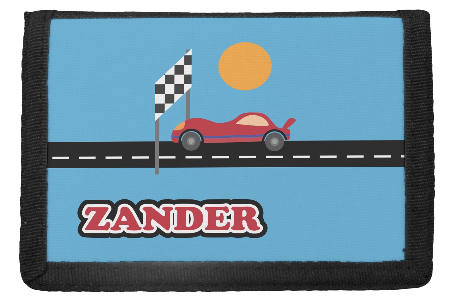Does your little guy dream of being a race car driver? Make his eyes light up with his very own race car! Our fun red race car is on the track and heading for 1st place under the checkered banner. The car scene is set on a beautiful blue background with the bright sun looking down.