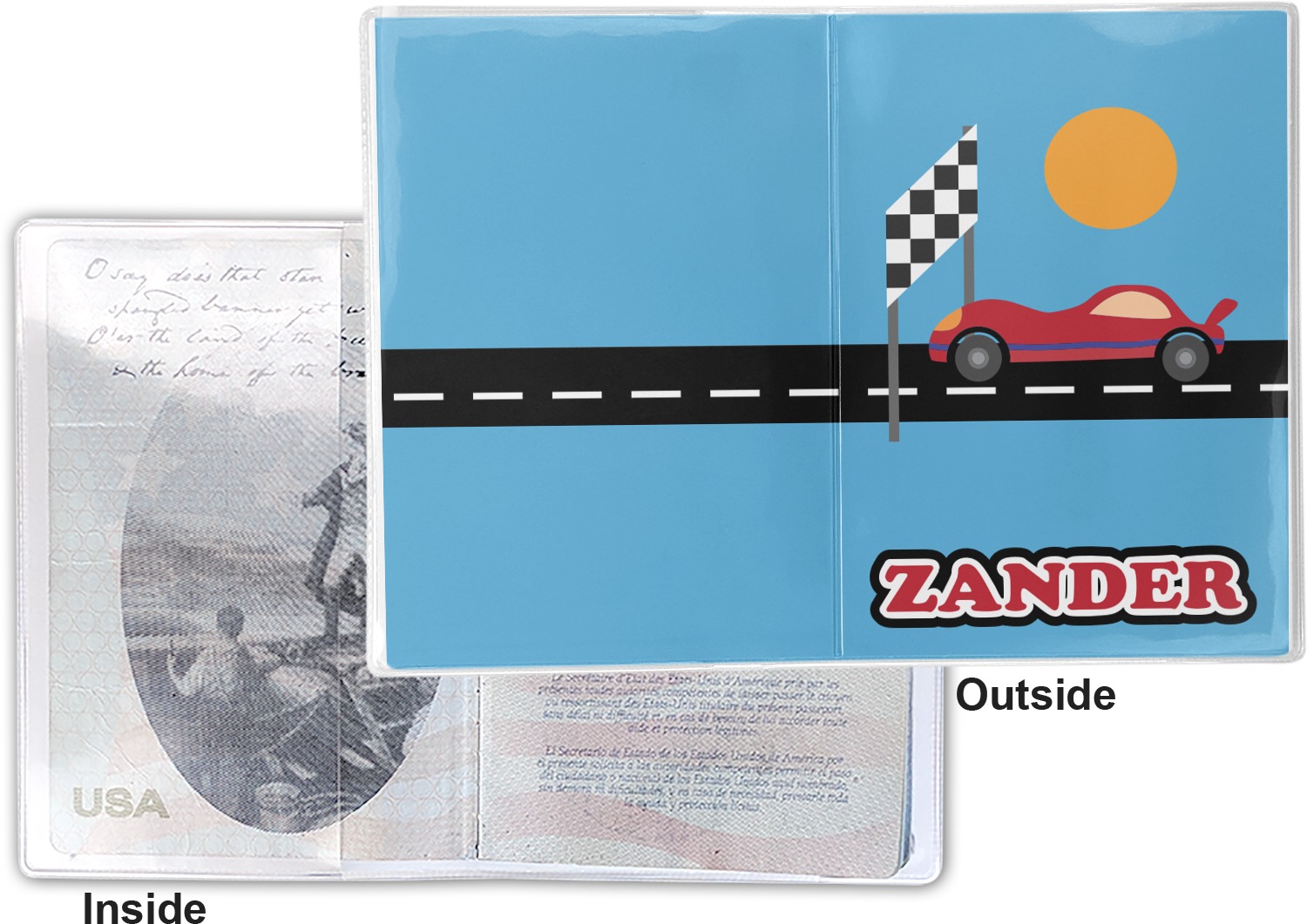 This cover is made of a sturdy clear vinyl with a personalized vinyl insert inside. There is a large and a small pocket on either side to hold the covers of your passport easily and firmly. The passport holder is approximately 7.5" x 5.25", the perfect size to snugly fit your passport. This slim cover is the perfect way to protect your passport without being one more bulky item you have to carry.