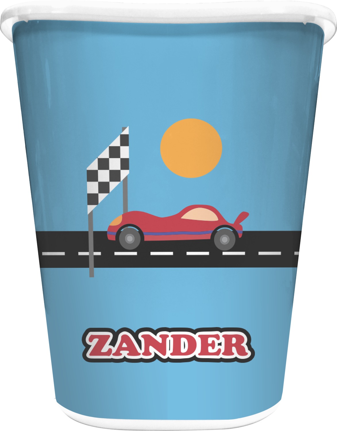 Does your little guy dream of being a race car driver? Make his eyes light up with his very own race car! Our fun red race car is on the track and heading for 1st place under the checkered banner. The car scene is set on a beautiful blue background with the bright sun looking down.