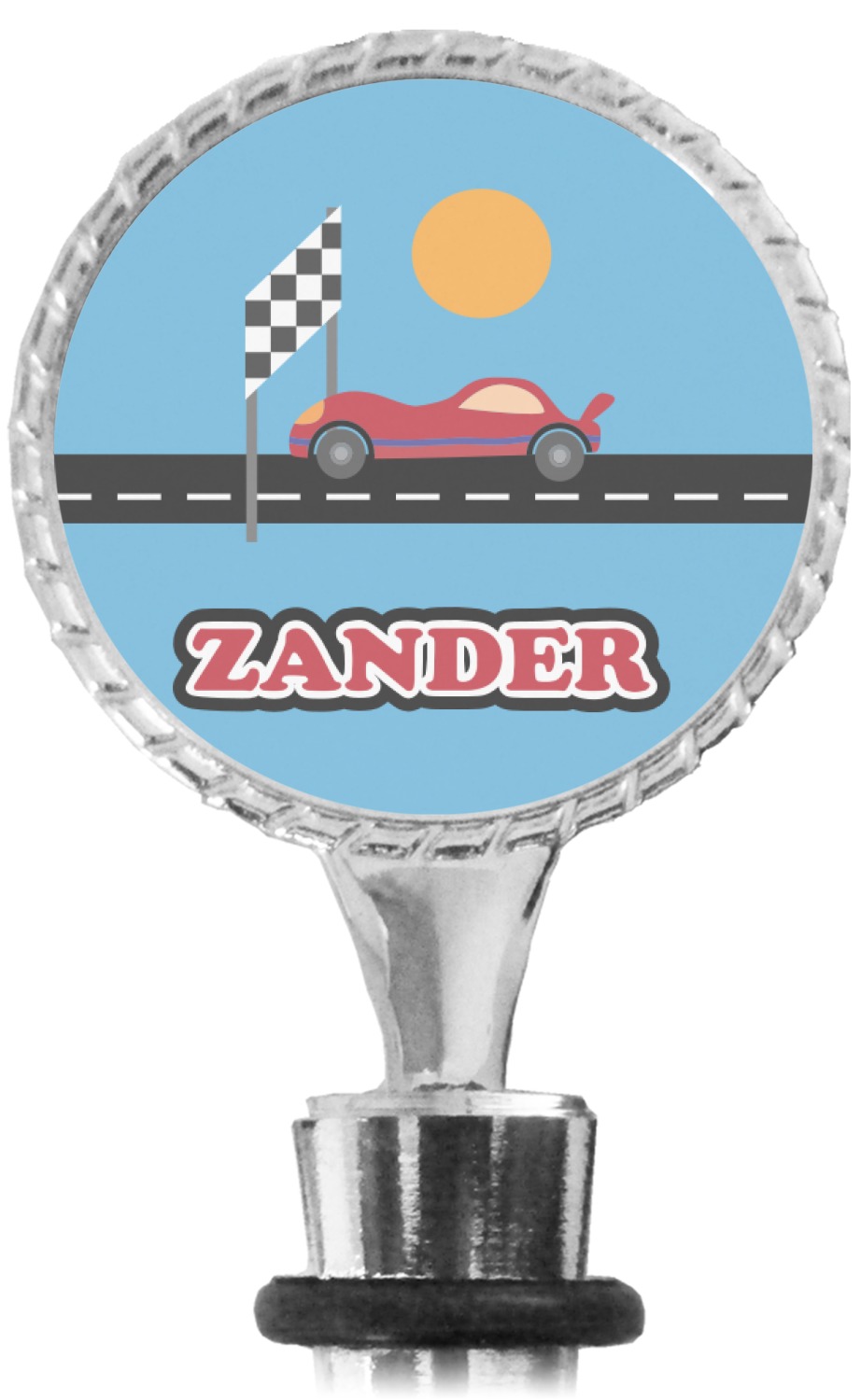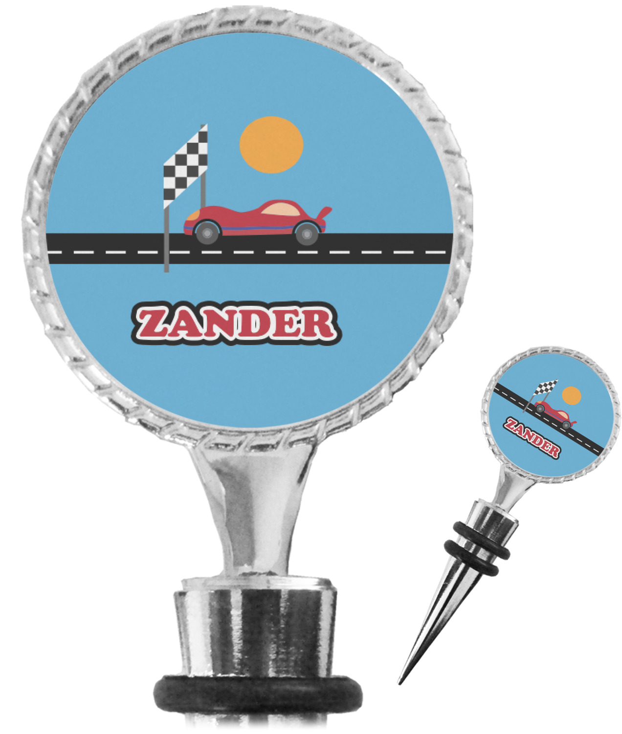 The top part of your bottle stopper is comprised of a zinc ring that displays your customization(s) in its middle, on both sides. The ring is heavy duty, with a bright chrome finish. The body of the wine stoppers have two silicone rings to provide an airtight seal. These wine bottle stoppers measure at 1.625" L x 0.8125" W x 4.625" H; your custom wine stopper is meant to fit into most standard-sized wine bottles.