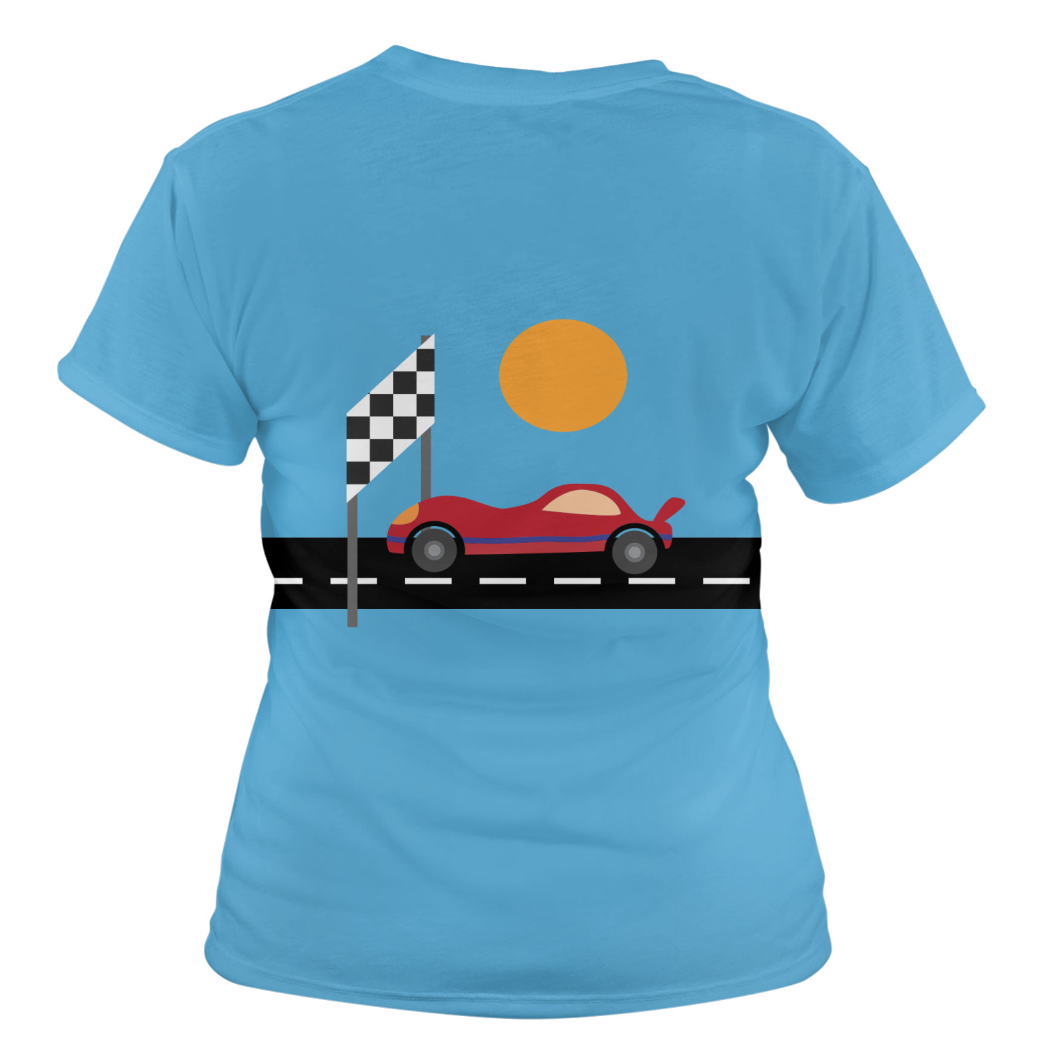 Does your little guy dream of being a race car driver? Make his eyes light up with his very own race car! Our fun red race car is on the track and heading for 1st place under the checkered banner. The car scene is set on a beautiful blue background with the bright sun looking down.