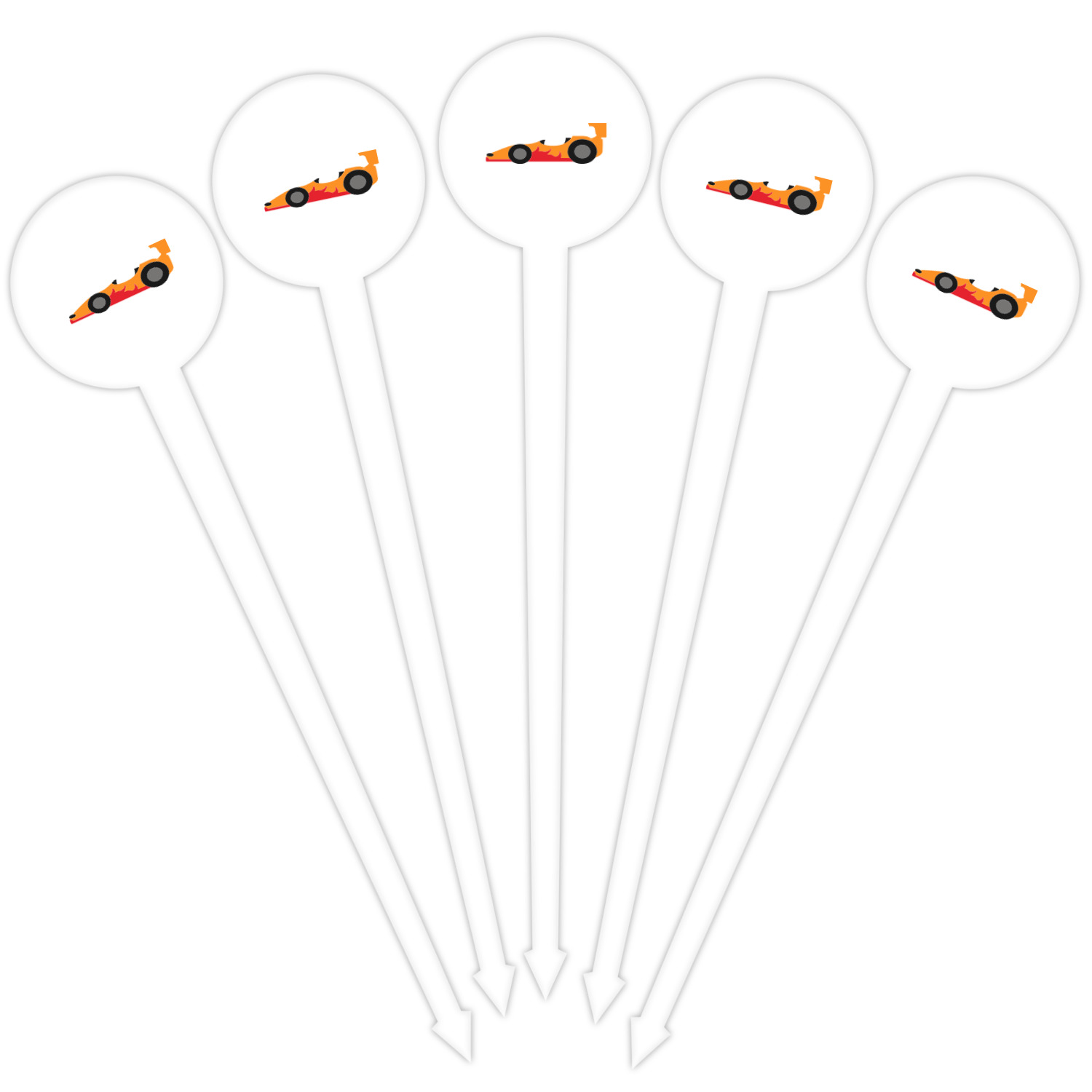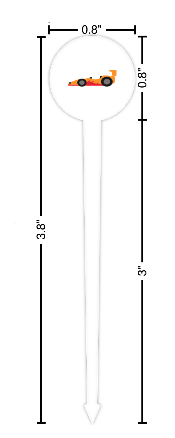 Race Car Designs for 4" Round Plastic Food Picks - White - Single-Sided