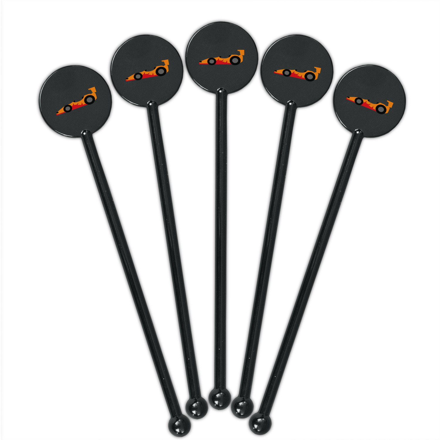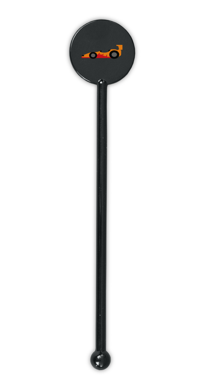 Race Car Designs for 5.5" Round Plastic Stir Sticks - Black - Single-Sided
