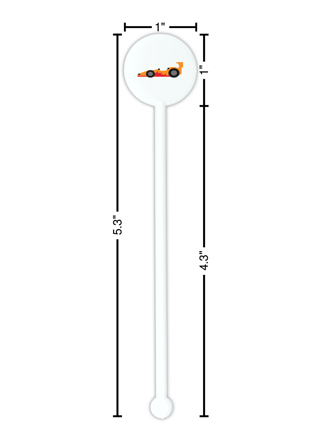 Race Car Designs for 5.5" Round Plastic Stir Sticks - White - Double-Sided