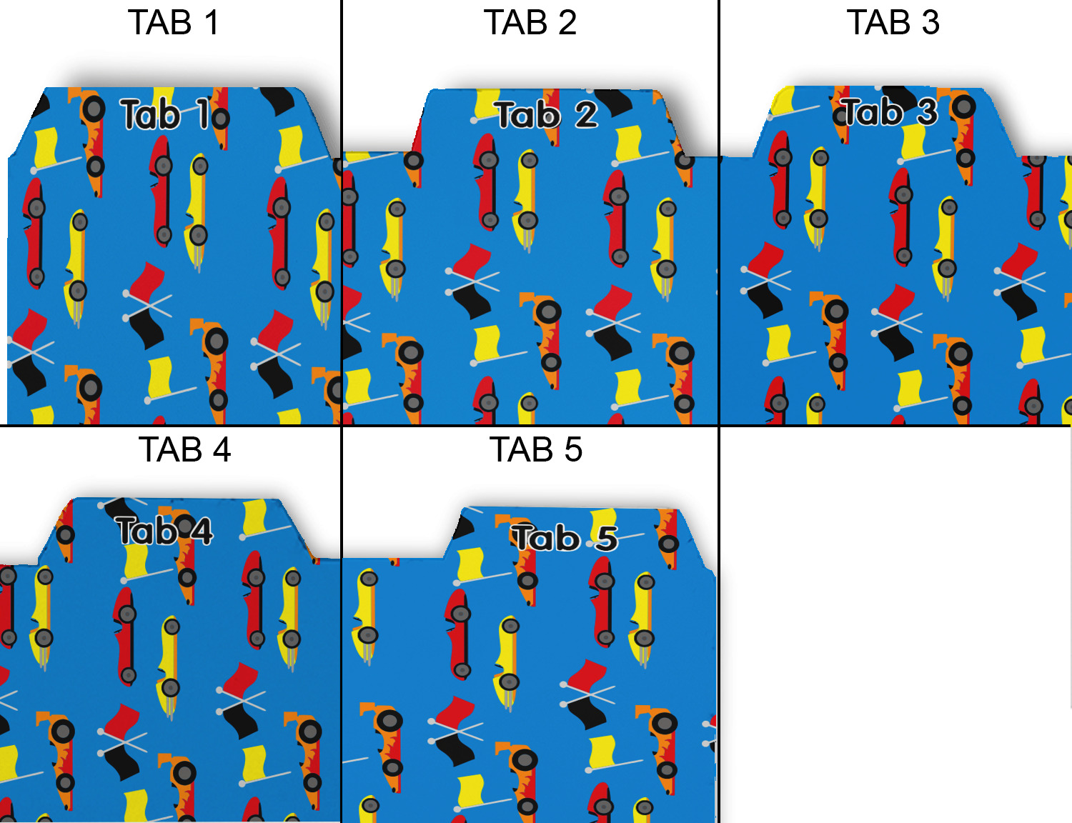 Race Car Designs for Binder Tab Dividers - Set of 5