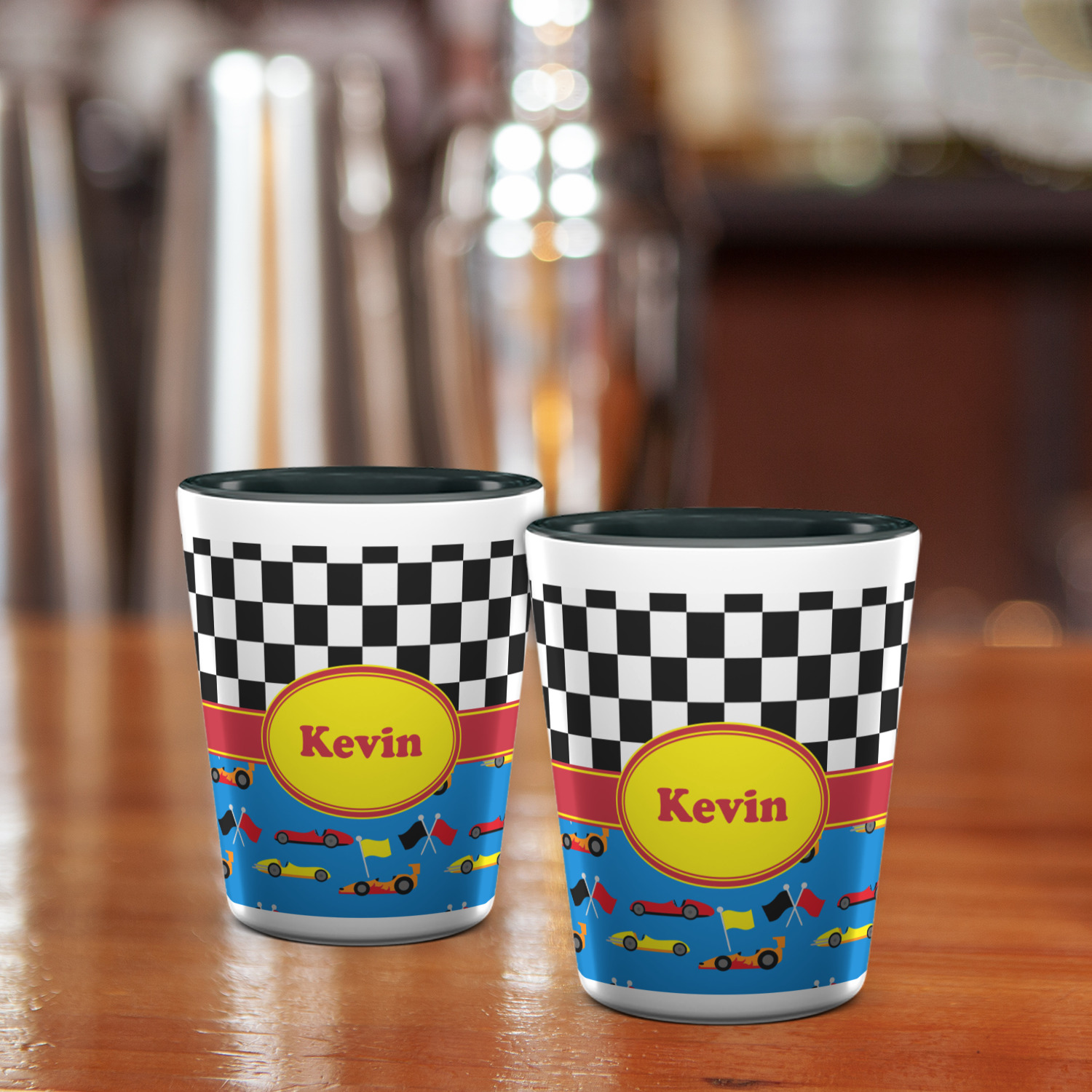 Race Car Designs for Ceramic Shot Glasses - 1.5 oz - Two Tone - Set of 4