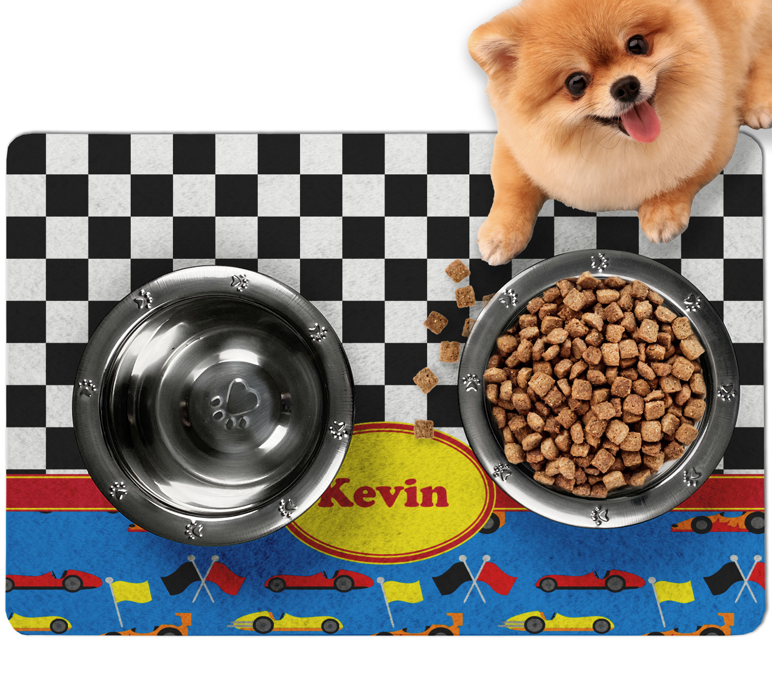 This dog bowl mat, fabricated from polyester, proudly displays your customized design on its top, while its bottom includes a non-slip rubber. This feature allows it to remain firmly in place, even when your dog spills his/her water. With 3 sizes available (18" x 12", 24" x 18", 30" x 24"), the pet food mat has ample space for both a food and water bowl for any sized dogs. Though specified for dogs' use, these mats are also a splendid option for cats.