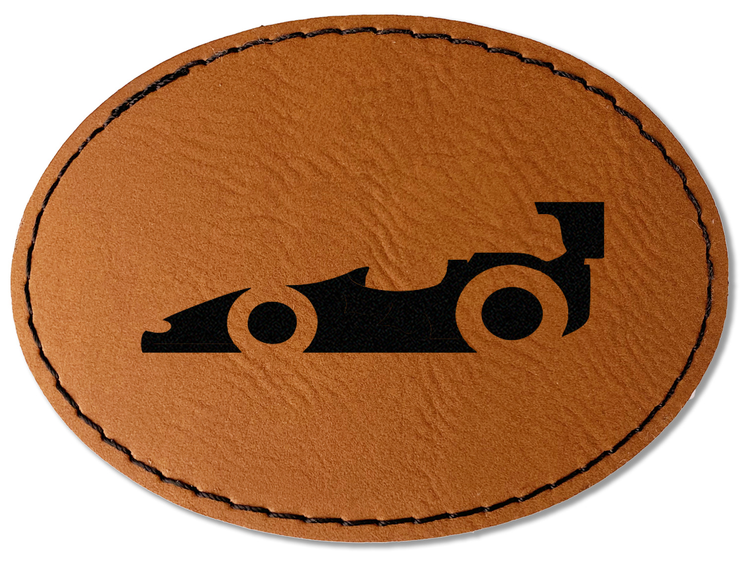 Race Car Designs for Faux Leather Iron On Patches - Oval
