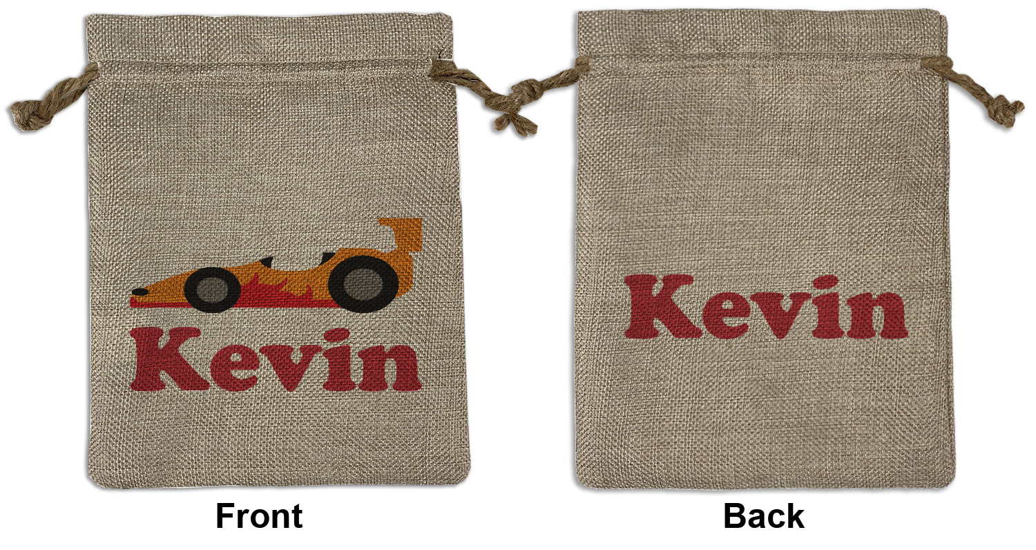 Race Car Designs for Burlap Gift Bags - Medium - Double-Sided