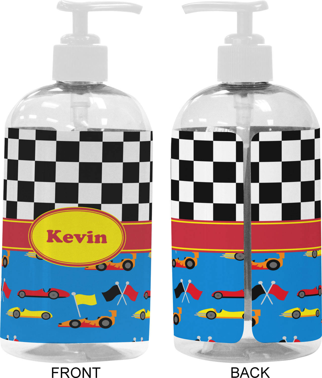 Race Car Designs for Plastic Soap / Lotion Dispensers - 16 oz - Large - White