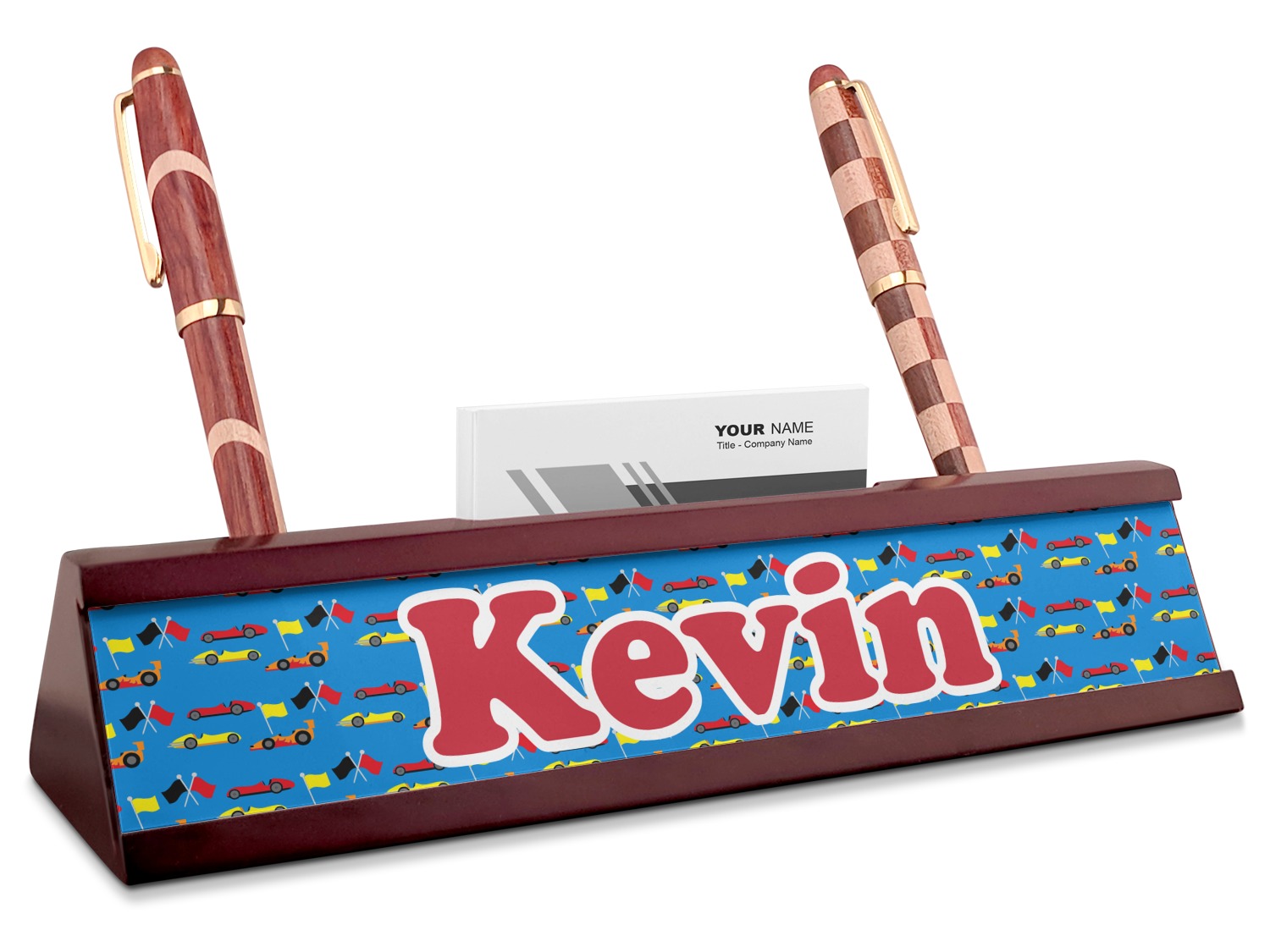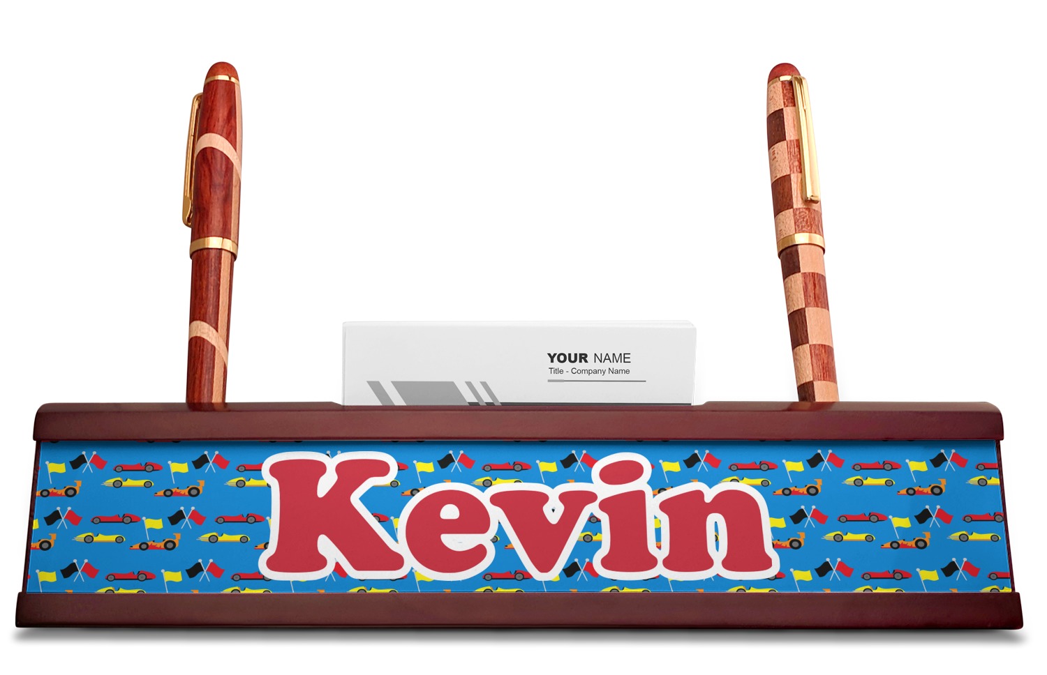 Race Car Designs for Red Mahogany Nameplates with Business Card Holder