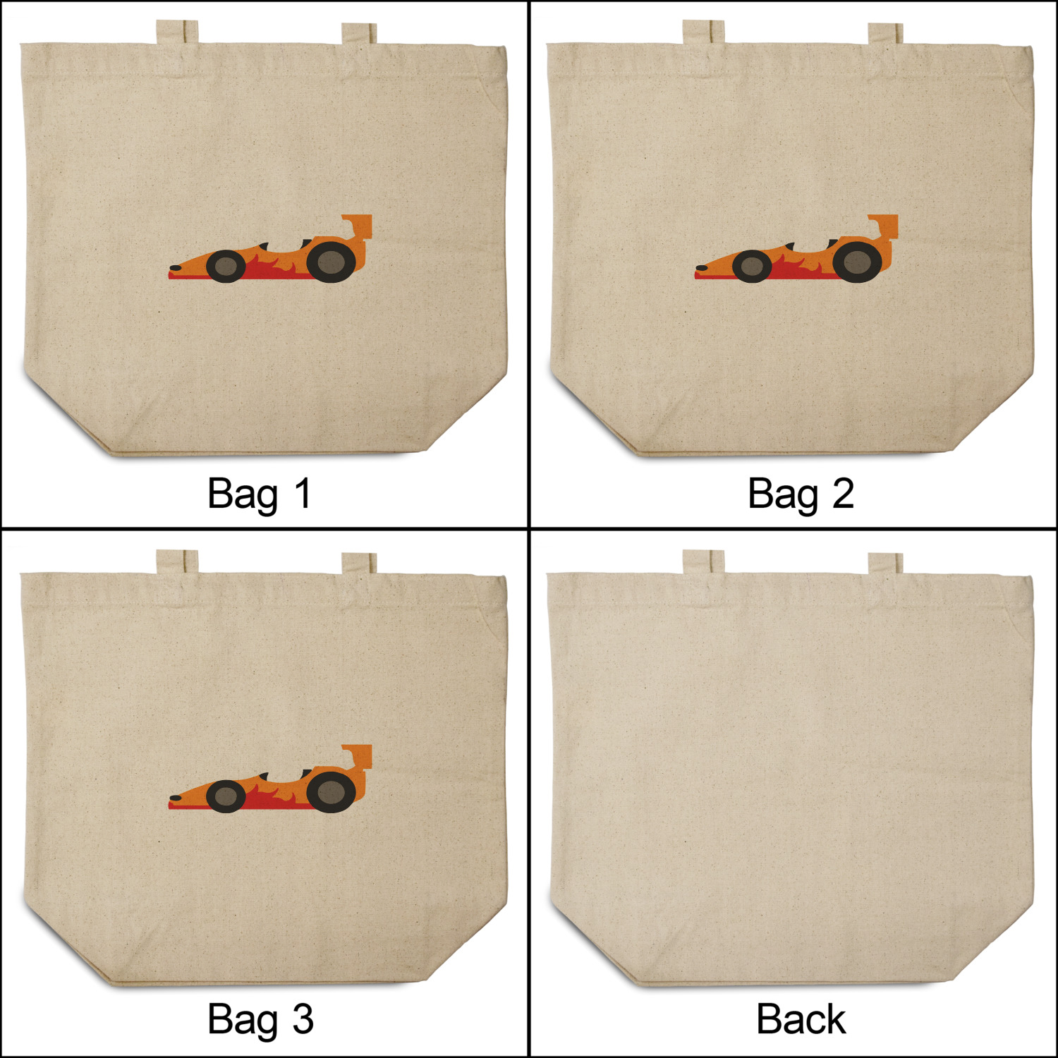 Race Car Designs for Reusable Cotton Grocery Bags - Set of 3