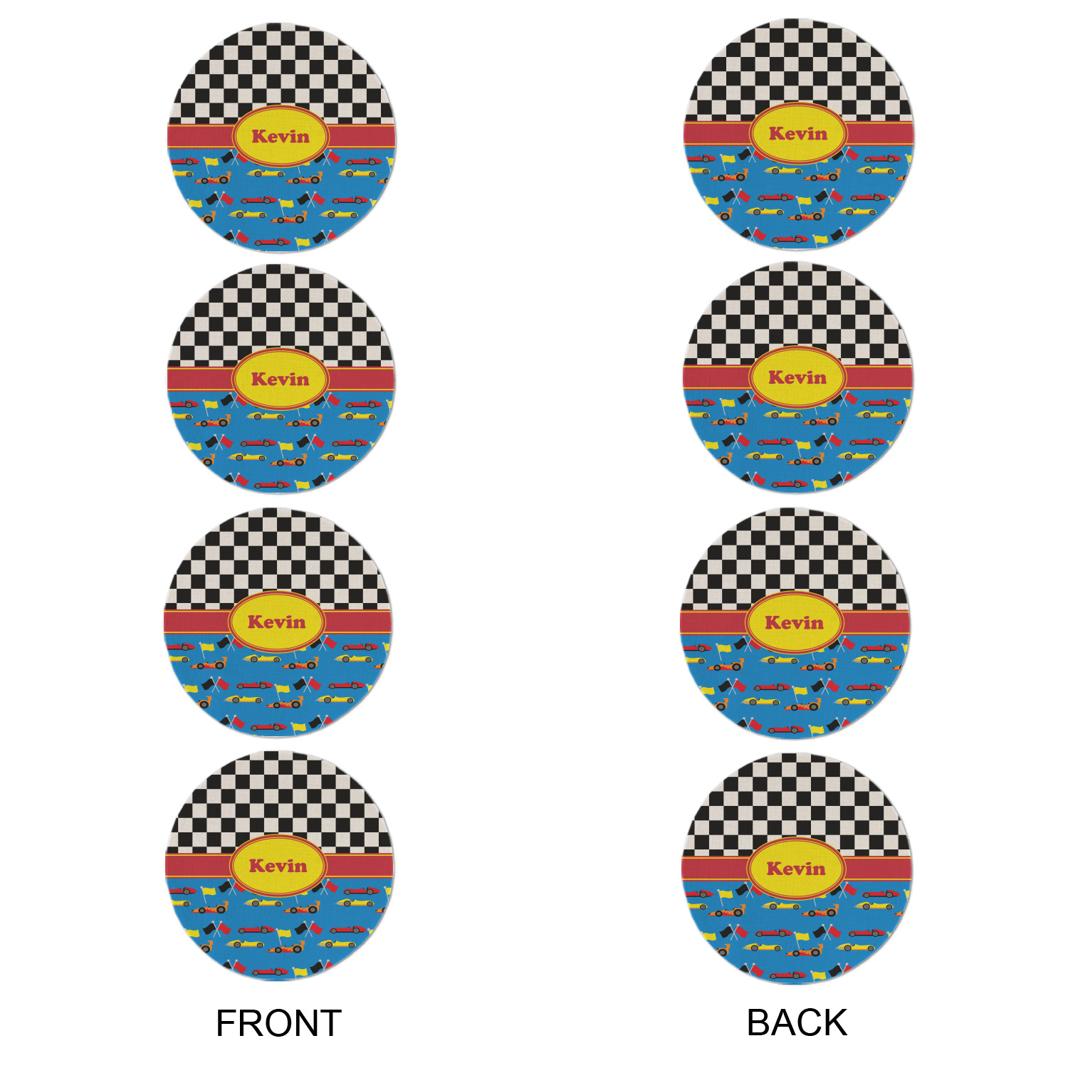 Race Car Designs for Round Linen Placemats - Double-Sided - Set of 4