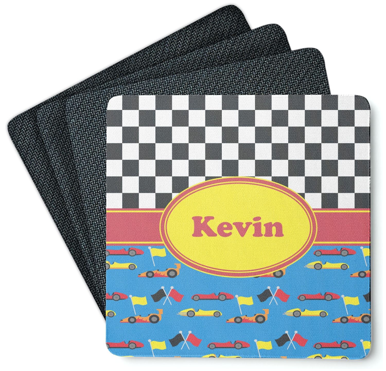 These drink coasters have a smooth, polyester top and a textured, rubber backing on its bottom. The non-slip rubber backing underneath works to keep any spills at bay. At 4 by 4 by 0.25 inches thick, these custom coasters are a suitable size for most drinkware. Your personalization is displayed atop the face of the cup coaster. We sell these rubber coasters in two different shapes: square and round. You can buy each shape as singulars or as a set of 4.