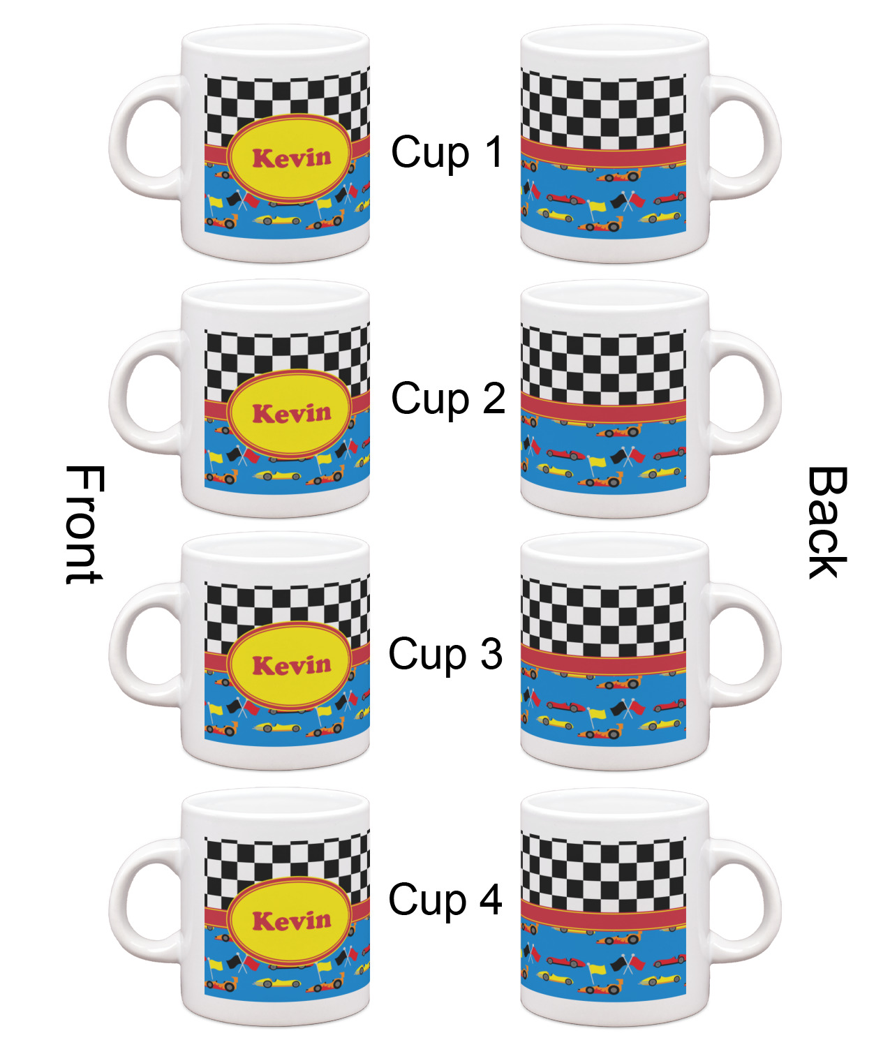 Race Car Designs for Single Shot Espresso Cups - Set of 4