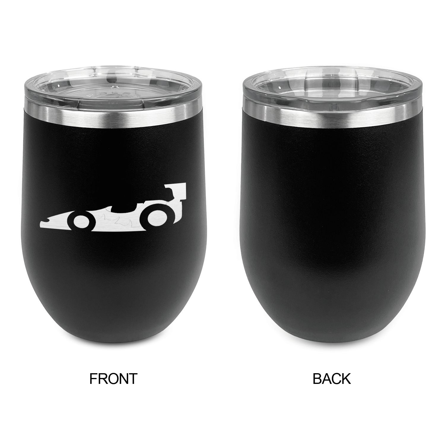 Race Car Designs for Stemless Stainless Steel Wine Tumblers - Black - Single-Sided