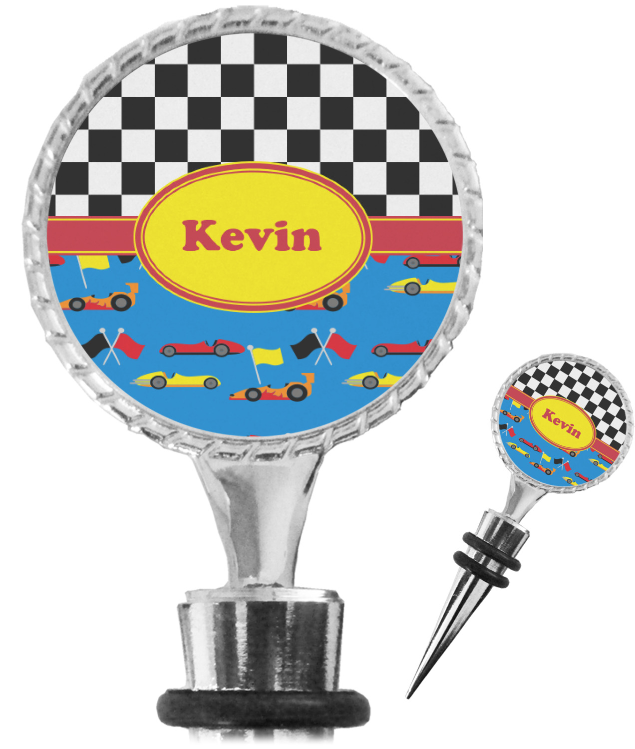 The top part of your bottle stopper is comprised of a zinc ring that displays your customization(s) in its middle, on both sides. The ring is heavy duty, with a bright chrome finish. The body of the wine stoppers have two silicone rings to provide an airtight seal. These wine bottle stoppers measure at 1.625" L x 0.8125" W x 4.625" H; your custom wine stopper is meant to fit into most standard-sized wine bottles.