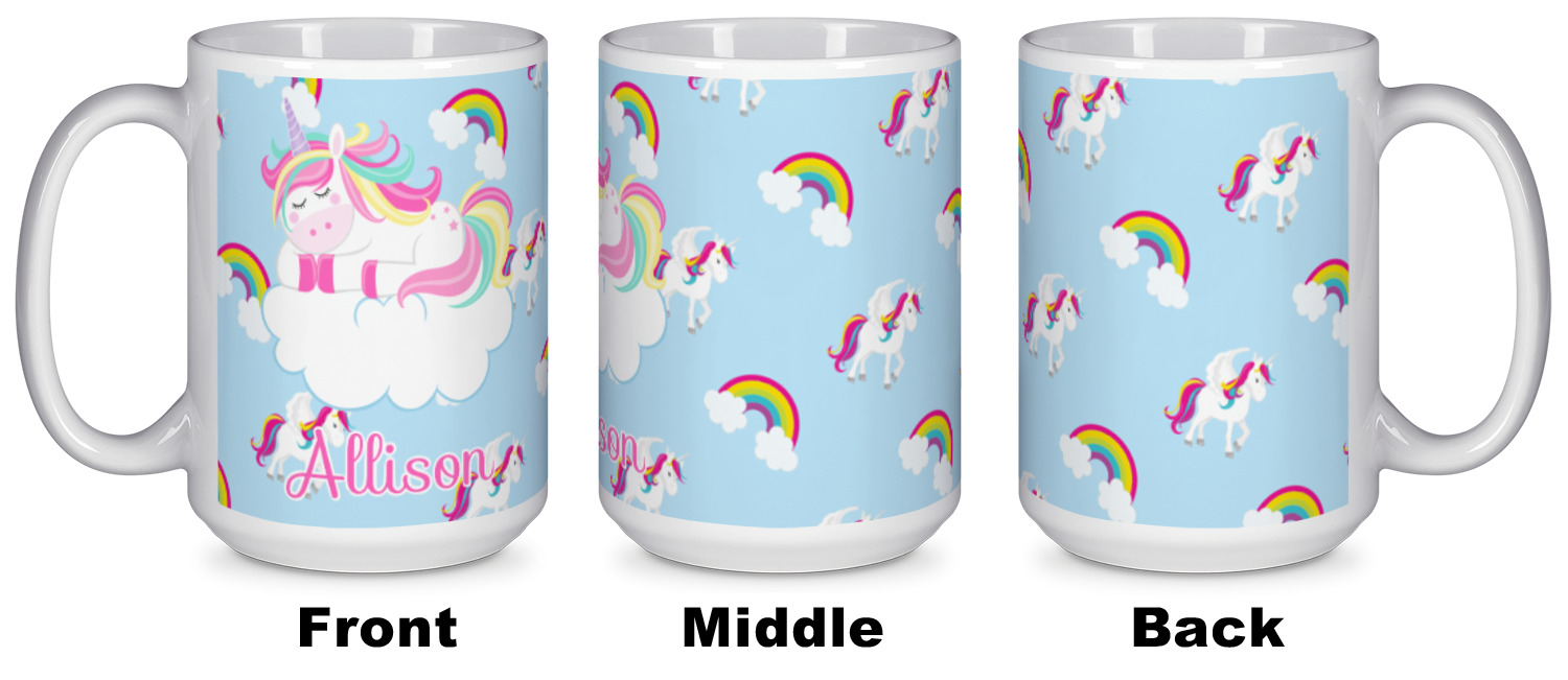 Our ceramic mugs have your design or photo printed along the surface with a gloss finish. The ceramic material of our mugs is dishwasher and microwave safe so you can reheat your tea or coffee if needed! We offer two different base colors with multiple mug sizes. The white ceramic mugs come in three size options - 11 oz., 15 oz., and 20 oz. Our black ceramic mugs are sold in either 11 oz. or 15 oz. sizes.