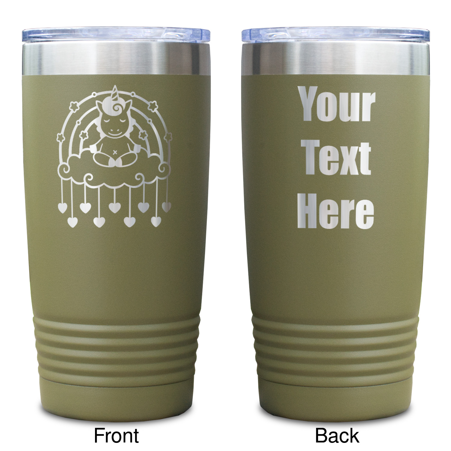 With our personalized 20 oz double wall stainless steel tumblers, you'll never have to settle for a plain, boring tumbler again! These tumblers will be a wonderful addition to your drinkware collection and will make those long commutes much brighter. Personalize one for yourself, or give these personalized tumblers as a gift to relatives, friends, or coworkers!