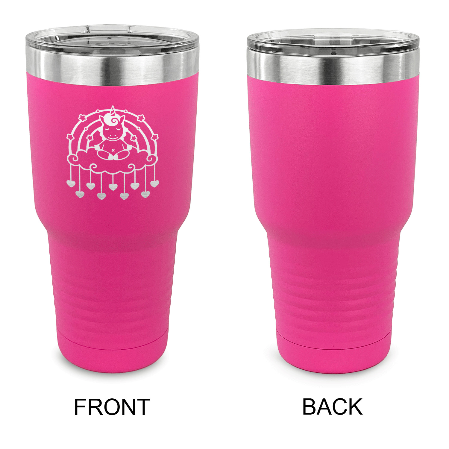 With the 5 colors - Black, Navy, Red, Pink and Coral, you are sure to find a cup to fit your personality. You can chose to engrave on the front or the front and back of the cup. Use our design studio to design your own cup and we laser engrave it for you.