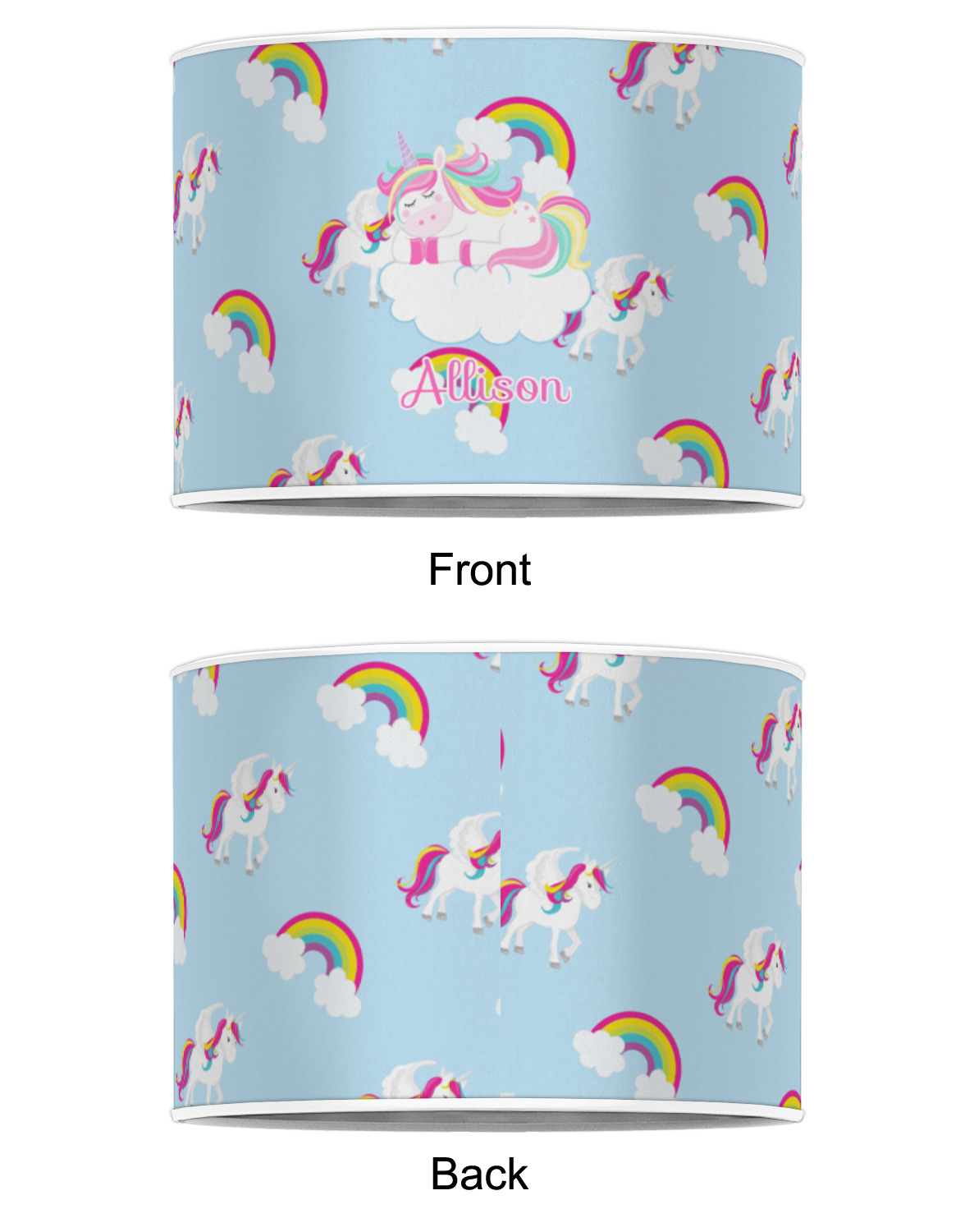Our customized lamp shades also come in 3 different sizes: 8", 12" and 16", measuring at 8" in diameter by 6" tall, 12" in diameter by 8" tall, and 16" in diameter by 10" tall, respectively.
