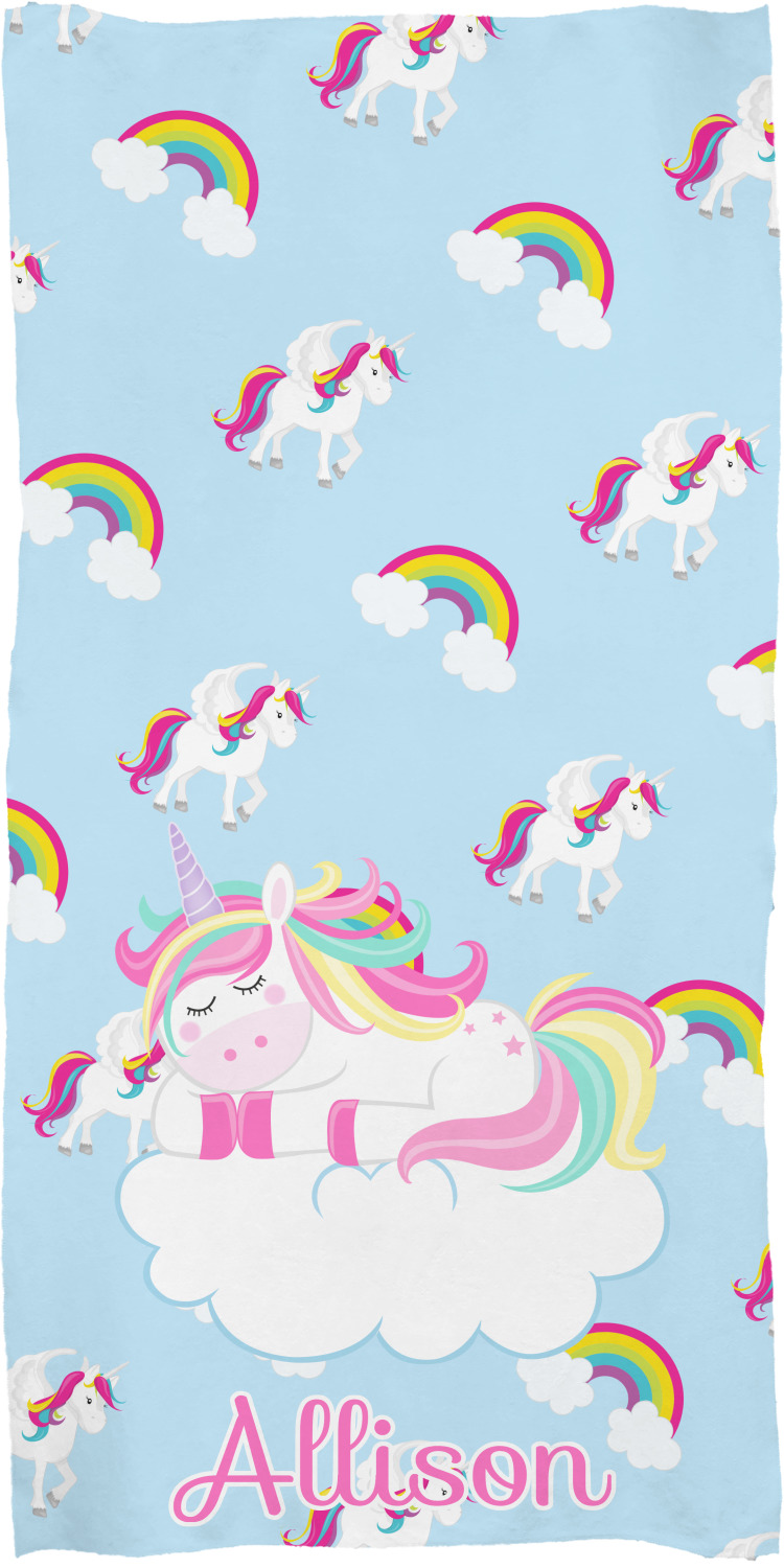 These customized bath towels are slightly larger than your standard towel and are the ideal size for wrapping around your body. They measure approximately 60" x 30". Your customization is displayed across the entire front face of the towel, while the back is white.