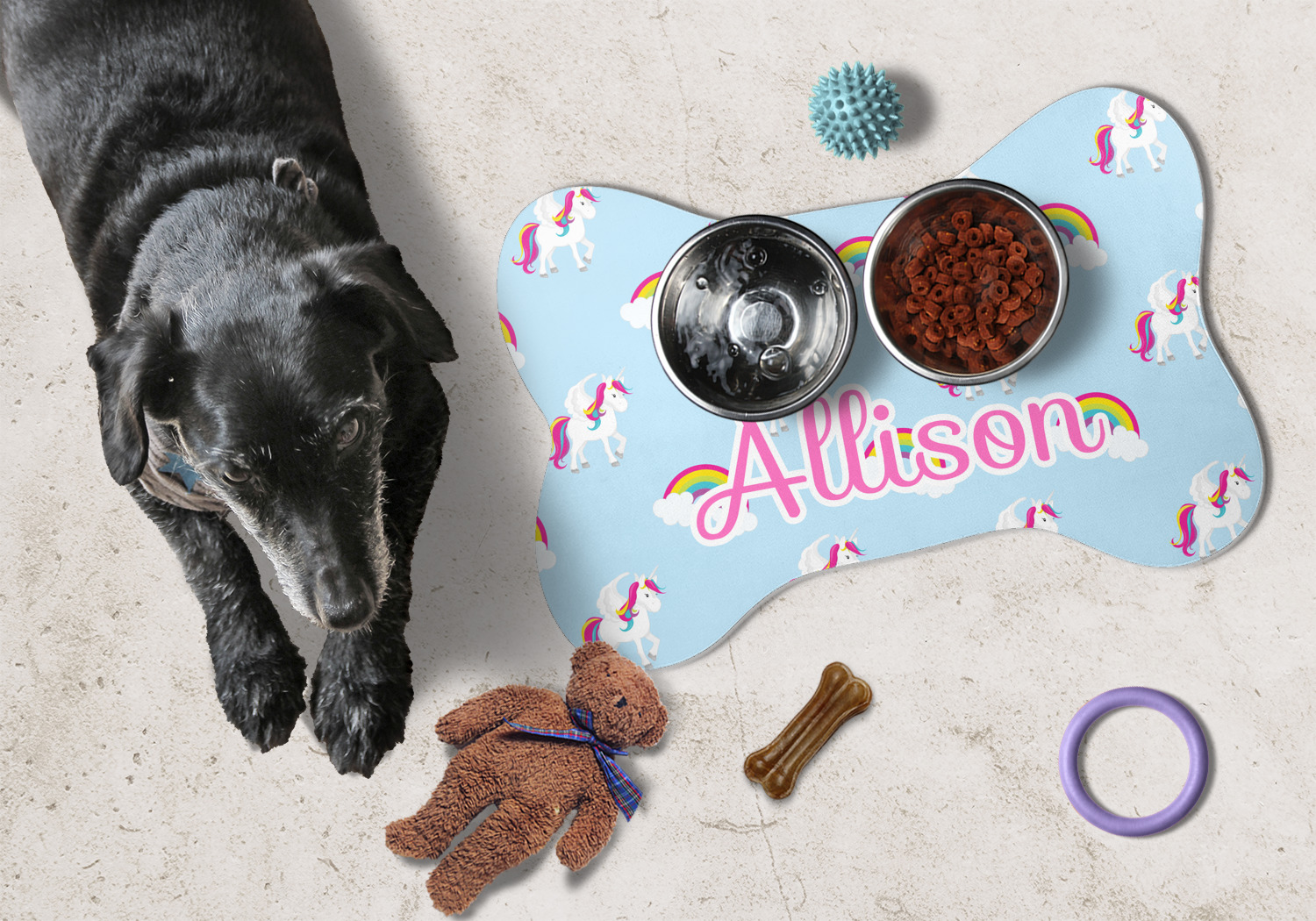 If you are purchasing a pet food mat, consider a customized dog bowl, dog collar, a bone-shaped dog tag, or any other pet supplies to match! Check out our Pet Accessories category for even more options! Craft a design that you want to extend to your eating area? Try our Home and Garden category for kitchen decor options!