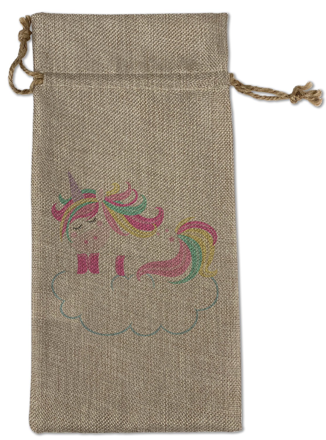 We sell our Burlap Gift Bags in 3 variant sized bags. Made with burlap polyester, each personalized bag can be secured with a twine drawstring pull. Your custom design is available to print on one side or both sides - completely up to you! The sizes of the bags measure approximately 4.5" x 6.5" for the smallest size, 6.5" x 8.0" for the medium size, and 6.5" x 13.5" for the large-sized bag.