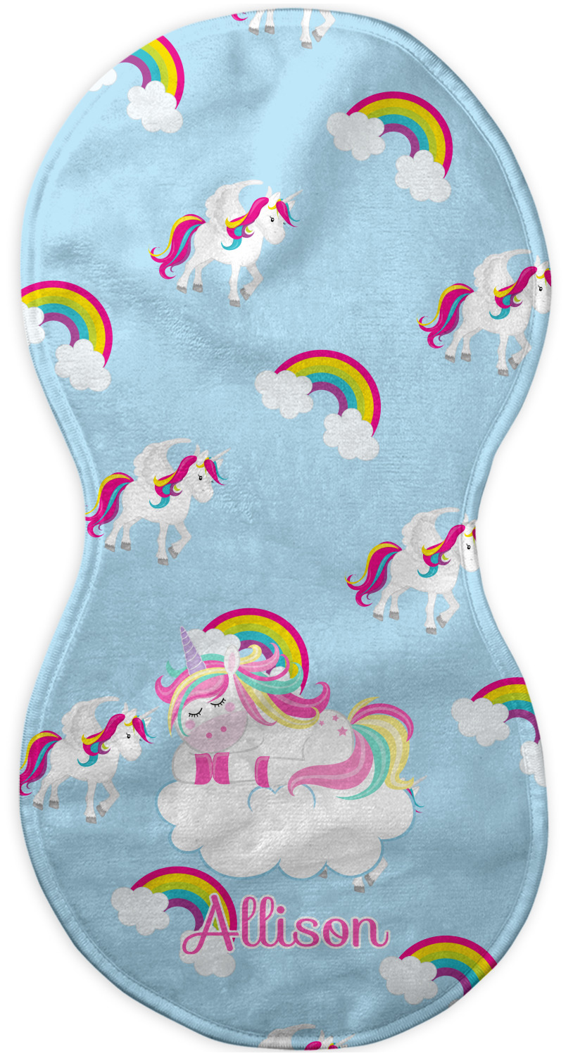 Choose your baby burp cloth from our two styles - Fleece (rectangular) or Microfiber Velour (peanut shape). The lightweight and absorbent design makes each burp cloth multipurpose; use them as a burp pad, a lap pad, a changing table, or a spare cloth to clean up any baby mess. Your customization is displayed across the front with baby-safe ink to ensure extra comfort with a white backing.