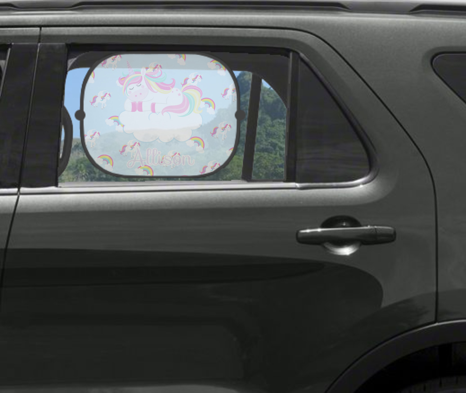 Our car sun shades are a perfect, personalized, multipurpose item that you can add to your car. The shades block most sunlight from your little ones' faces, keep the backseat a bit darker, and add a cute touch of personality to your windows.