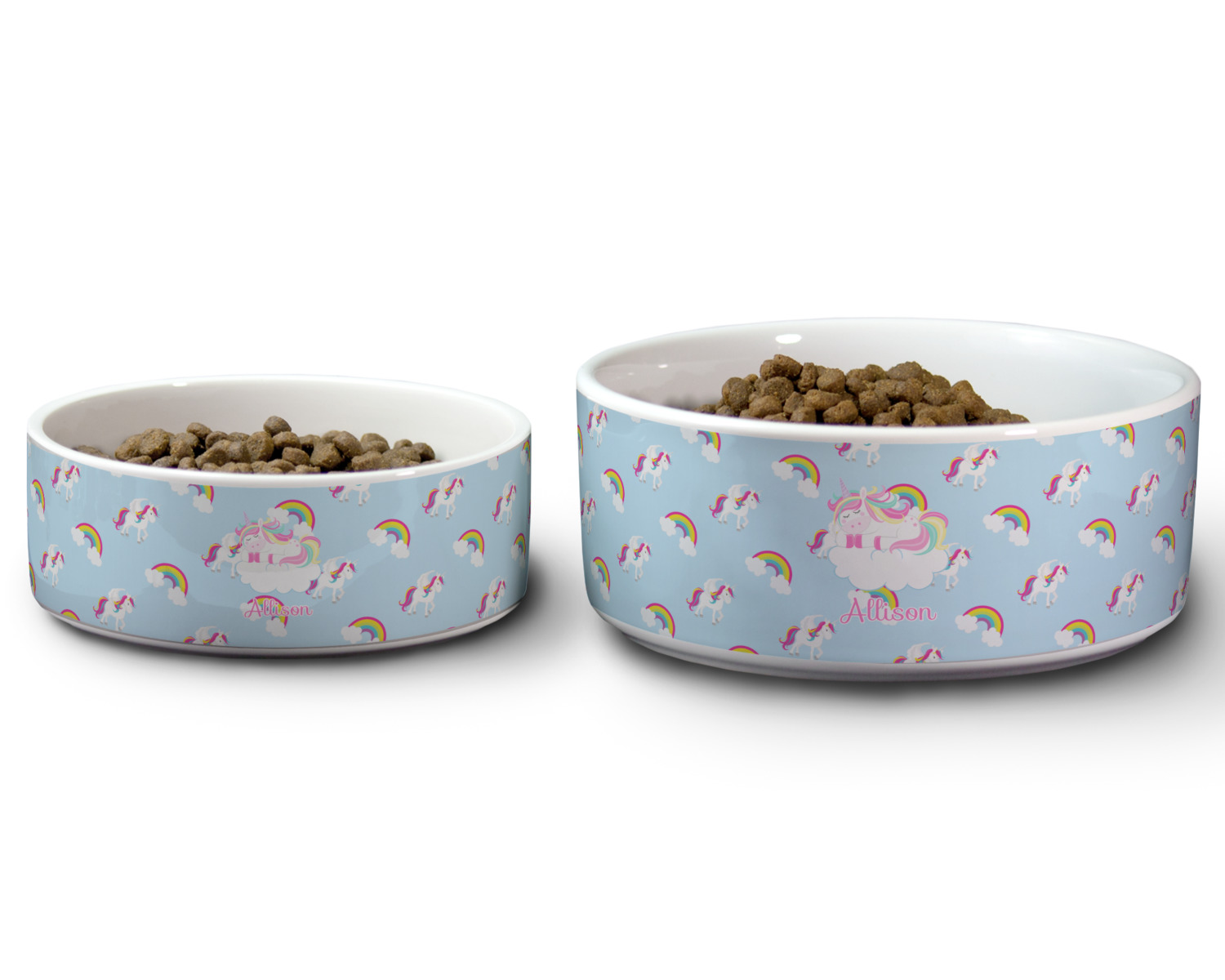 Our customized, ceramic dog bowls allow you to fashion a durable, yet expressive gift for your pet. These bowls are fashionably versatile; they suit both cats and dogs and can hold either food or water. Add your pet's name or favorite color to the design, and spruce up his/her eating area with one or two personalized pet bowls!