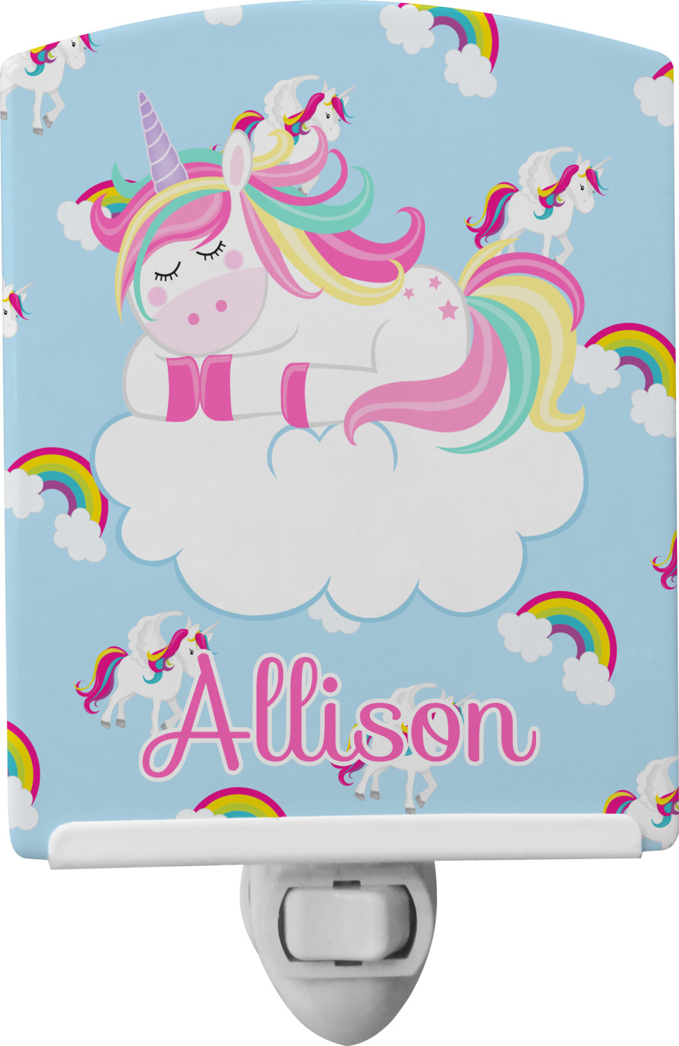 This baby night light is made of durable, ceramic plate that displays your customized design beneath a glossy finish. When this light is turned on, your personalization glows in the dark and offers a bit of light to any room or hallway. The plate also rotates easily. This plug-in night light has a white base with a convenient on and off switch. Additionally, the rotating plug allows you to plug them into US sockets horizontally or vertically. If your child outgrows the design years into the future, you can easily unscrew the plate and use it as a plain nightlight. With your purchase of this outlet night light, we include a 7-watt bulb.