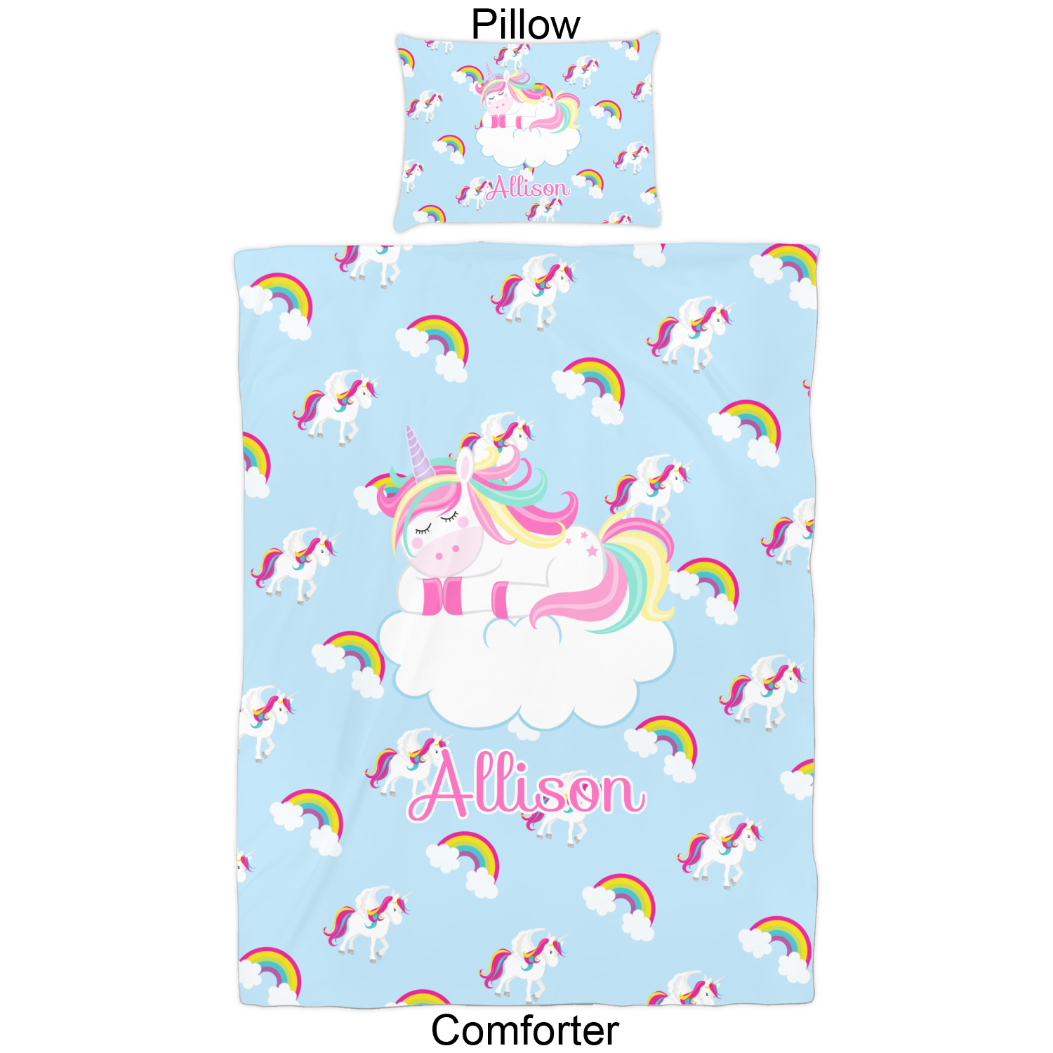 We have hundreds of different design templates for you to choose from Each design can be customized to your exact specifications. Not only can you customize the comforter, but you can also customize each pillow sham e.g. for a queen comforter set you have have Mr & Mrs pillow shams with the last name on comforter.