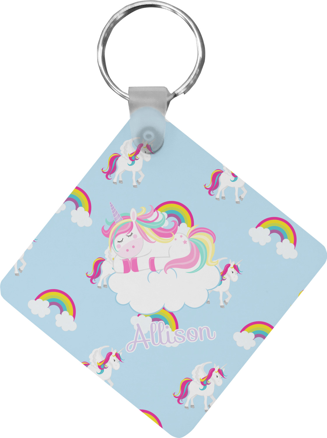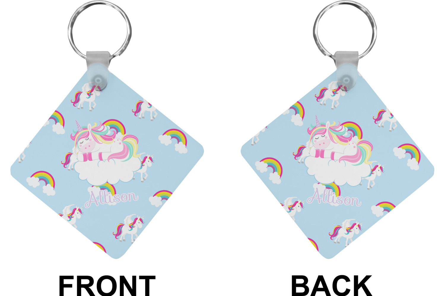 Our personalized keychains attach to the included metal, split key ring with a plastic, removable snap. Since a metal ring is included with your purchase, you have the liberty to keep your keys together on the ring, with or without your unique keychain. We offer this keychain in three different shapes: circle, heart, or diamond. We print your personalized design(s) on both sides of the key chain, and the surface has a glossy, reflective finish that only emphasizes your design. Each keychain is approximately 2.25 by 2.25 inches.