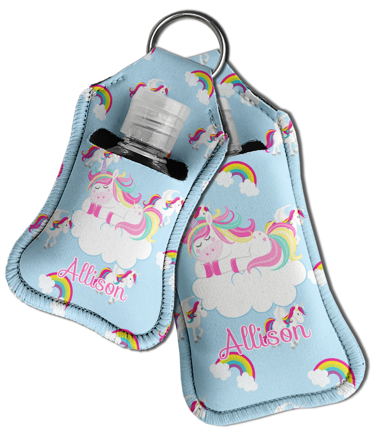 Each hand sanitizer holder comes with its own empty travel-sized, refillable hand sanitizer sure to fit snug in your customized sanitizer case! Our hand sanitizer cases are a durable, yet soft neoprene material sure to last any daily activities or travel agenda. Customize and personalize a hand sanitizer bottle holder with one of our two sizes - small (4.25" x 2.25") or large (5.5" x 2.5"). Each travel sanitizer holder comes with a keyring for attachment on bags, keys, or more!