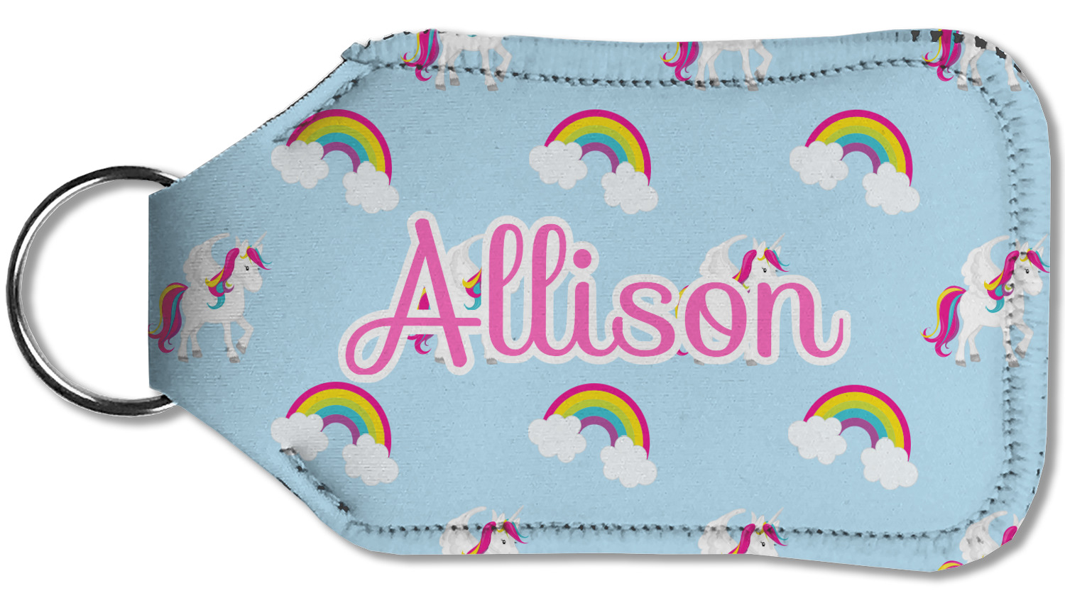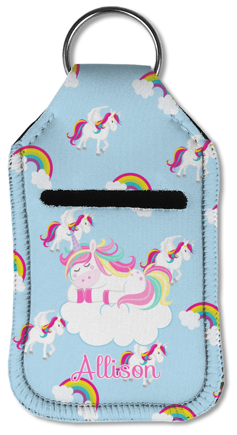 Each hand sanitizer holder comes with its own empty travel-sized, refillable hand sanitizer sure to fit snug in your customized sanitizer case! Our hand sanitizer cases are a durable, yet soft neoprene material sure to last any daily activities or travel agenda. Customize and personalize a hand sanitizer bottle holder with one of our two sizes - small (4.25" x 2.25") or large (5.5" x 2.5"). Each travel sanitizer holder comes with a keyring for attachment on bags, keys, or more!