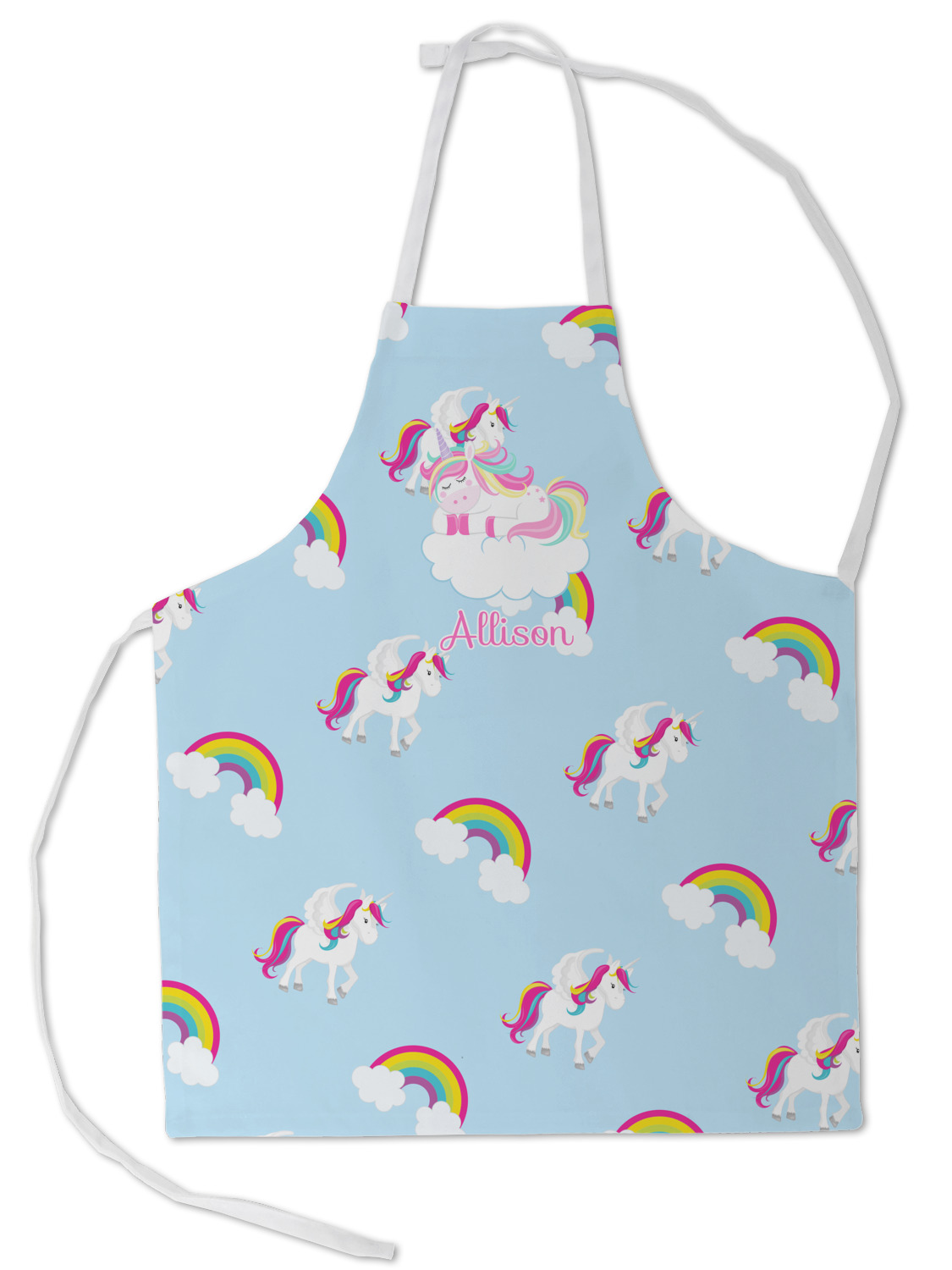 Our aprons are a lightweight yet durable polyester material. These aprons come in two sizes to fit most kids. We print your custom design on the front of the apron to display your creativity!