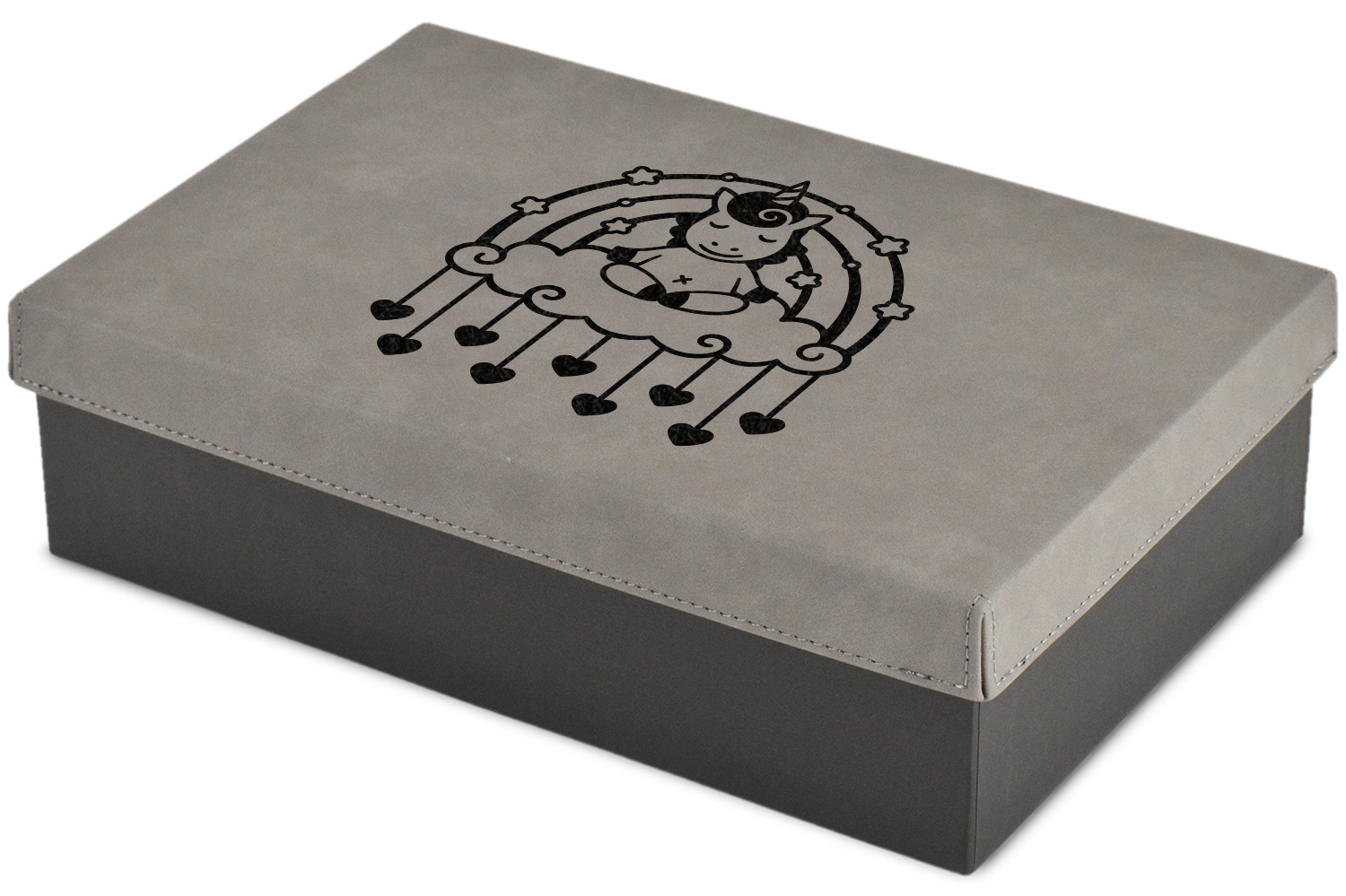 These gift boxes are available in 3 different sizes to accommodate various sized gifts. Available in gray as a neutral color for any occasion as well as to showcase your design boldly. Engraved with a laser this high quality paper board and faux leather gift box is unique and makes any gift stand out.