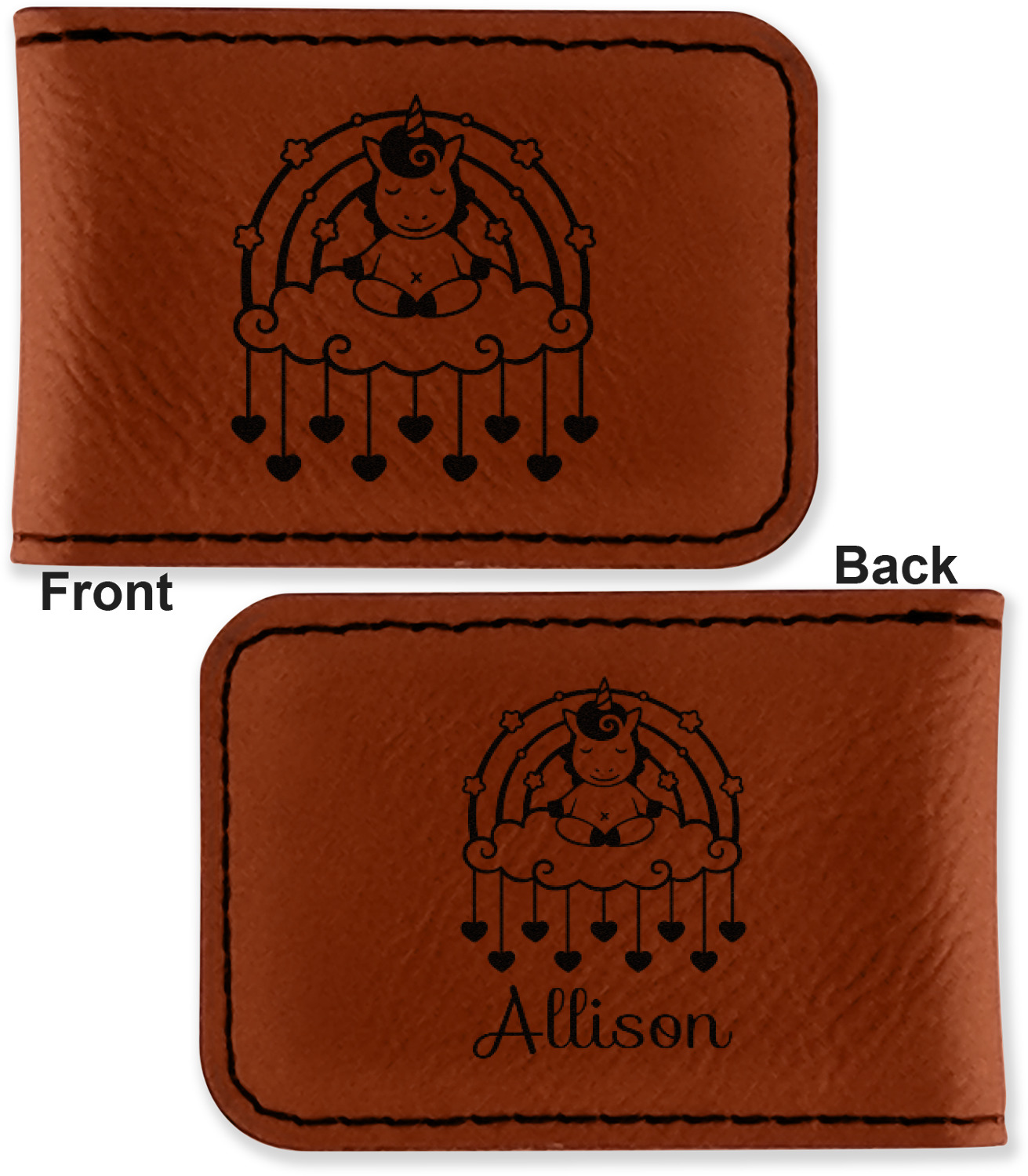 Your money clip will be laser engraved so that the design you choose will come out black. Find a fun graphic, monogram, or font to use to personalize your money clip either on just the front or the front and the back.