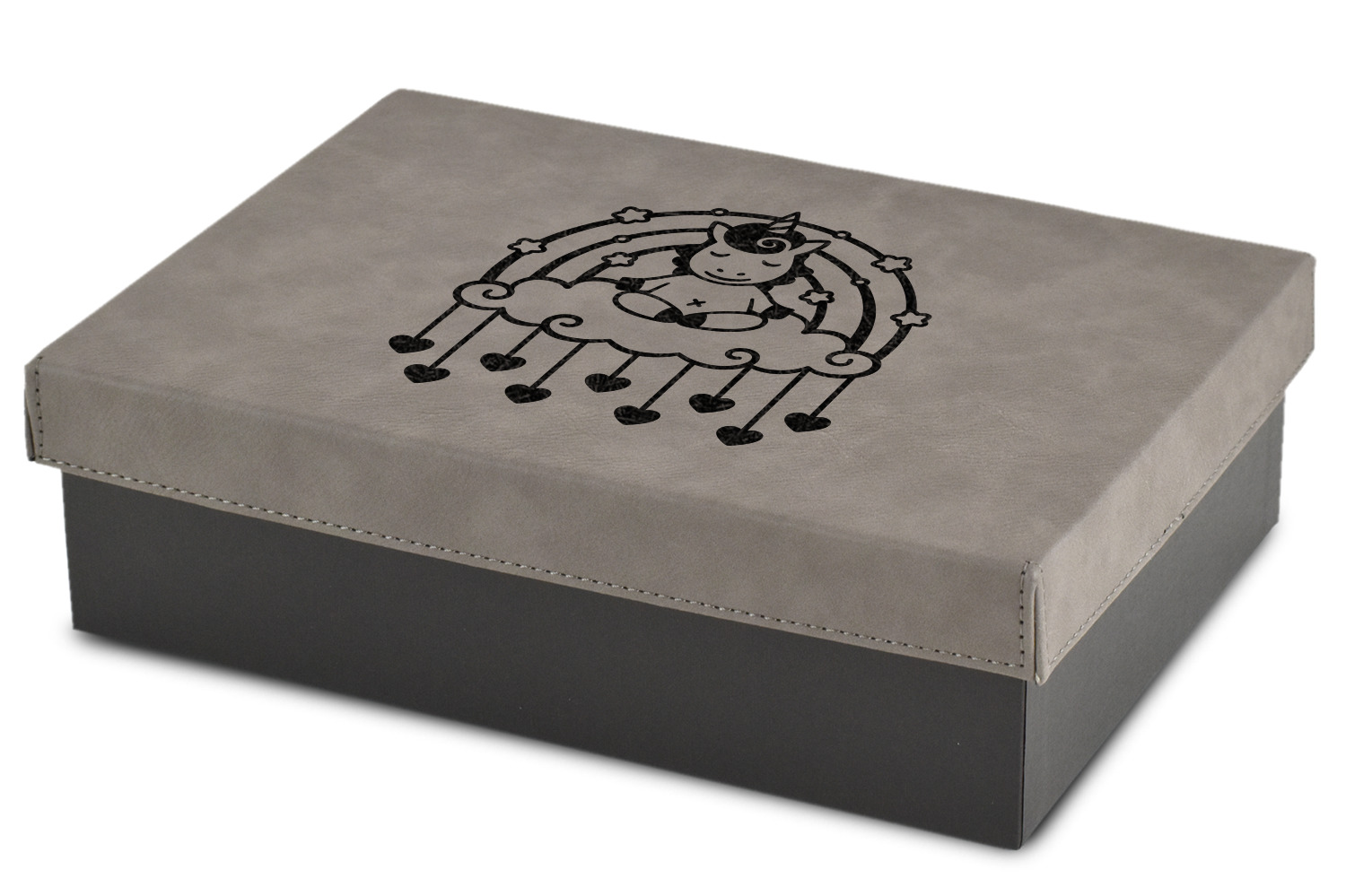 These gift boxes are available in 3 different sizes to accommodate various sized gifts. Available in gray as a neutral color for any occasion as well as to showcase your design boldly. Engraved with a laser this high quality paper board and faux leather gift box is unique and makes any gift stand out.