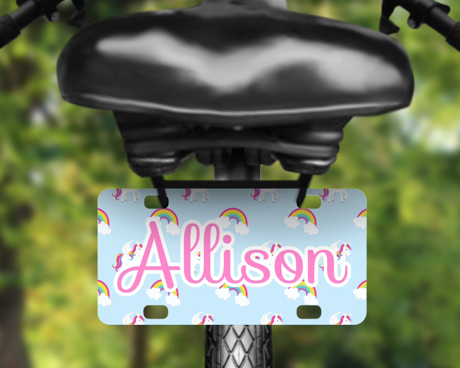 These mini license plates are made of a durable aluminum, and feature 2 or 4 mounting holes for easy installation. Simply screw on or thread a tie through the holes for easy attachment to whatever surface. At 3 by 6 inches, these are intended to be kids license plates and bike license plates, but can be used wherever you deem fit. We print your custom design using a permanent ink that will resist chipping over time, while our applied glossy finish attracts even more attention to your creative plate. Ultimately, the integrity of your design will last for two years in especially harsh sunlight.