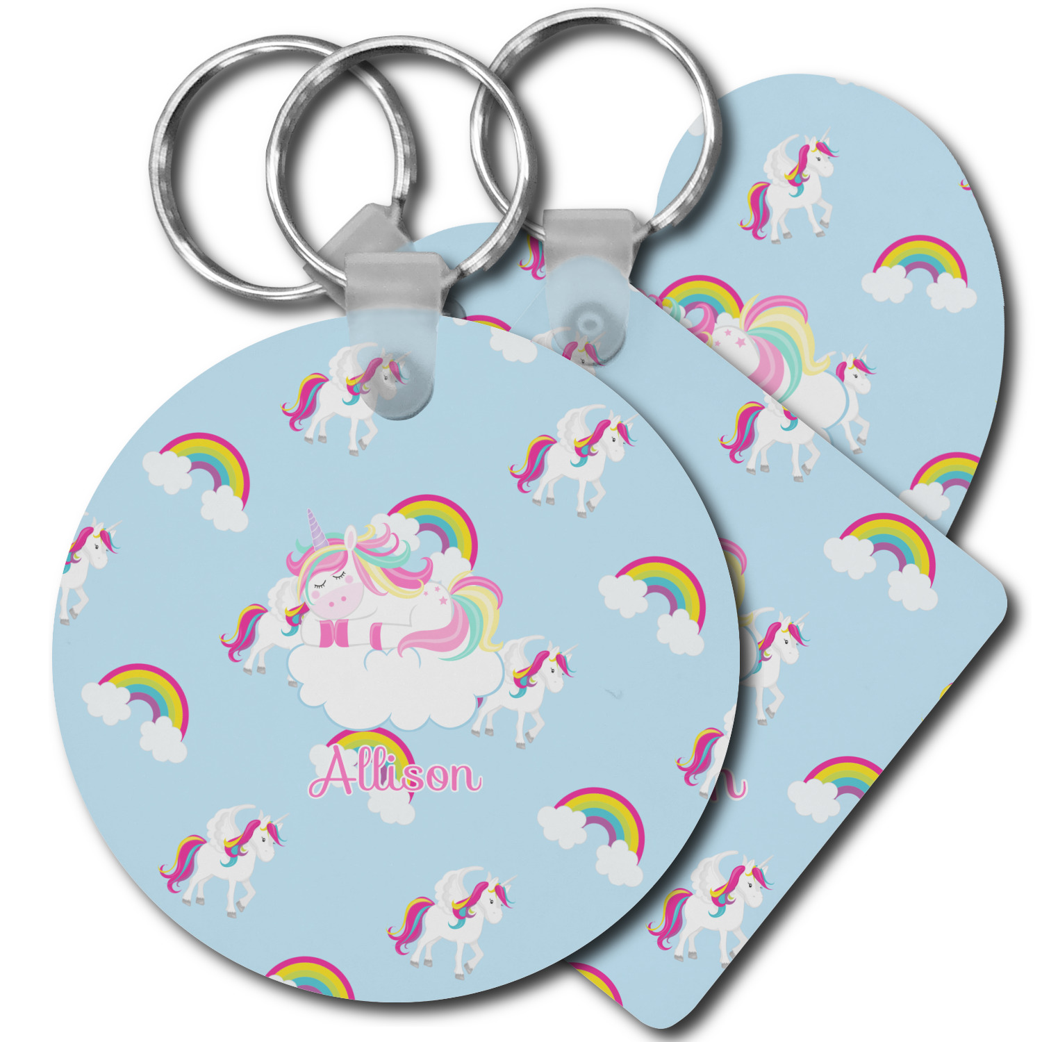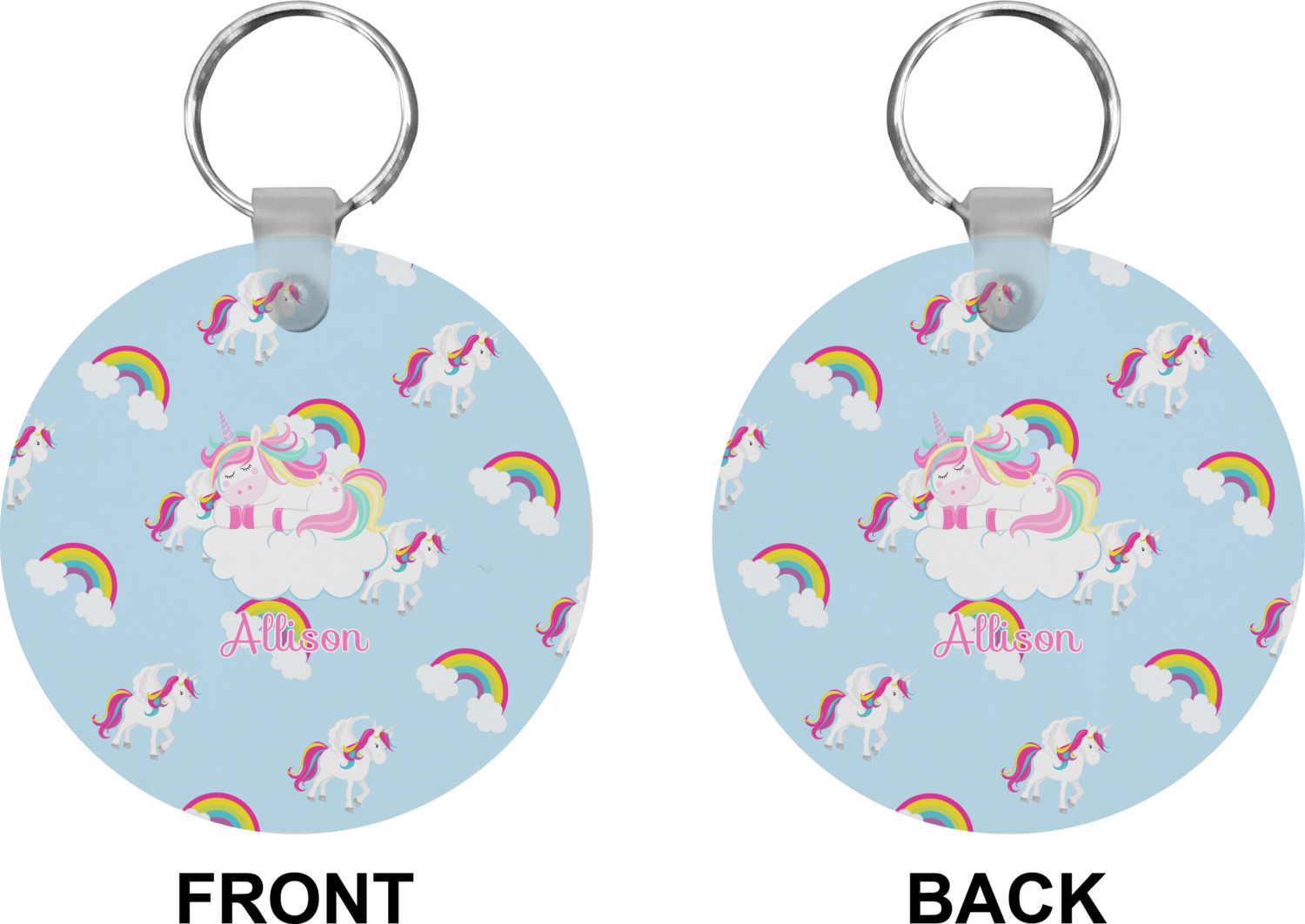 Our personalized keychains attach to the included metal, split key ring with a plastic, removable snap. Since a metal ring is included with your purchase, you have the liberty to keep your keys together on the ring, with or without your unique keychain. We offer this keychain in three different shapes: circle, heart, or diamond. We print your personalized design(s) on both sides of the key chain, and the surface has a glossy, reflective finish that only emphasizes your design. Each keychain is approximately 2.25 by 2.25 inches.
