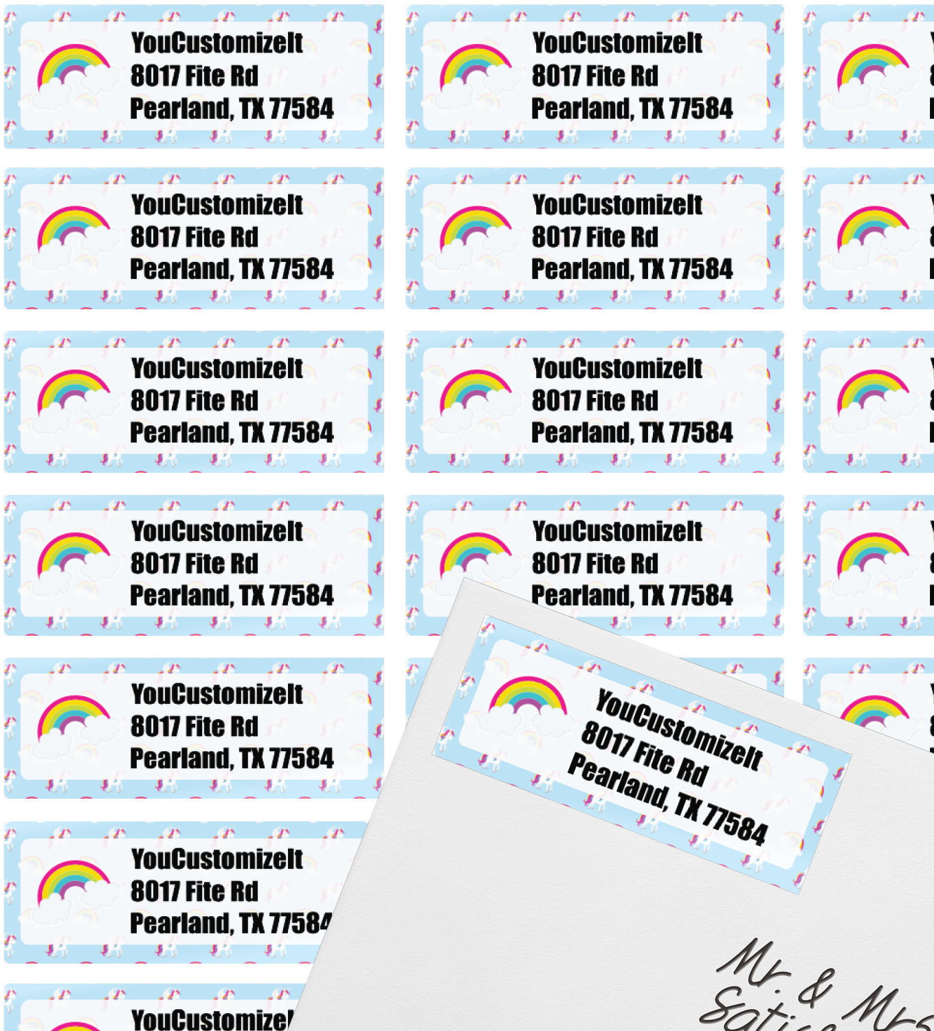Made of a professional grade, vinyl sticker material, these custom return address labels are shaped into rectangles, but the beautifully rounded edges give the address labels an elegant finish. These mailing labels are printed onto three sheets, with each sheet having 27 labels, resulting in 81 labels in total. With our return address stickers, you're able to customize your address (which is printed on a white background), the graphic accompanying your address, and the border surrounding your address.