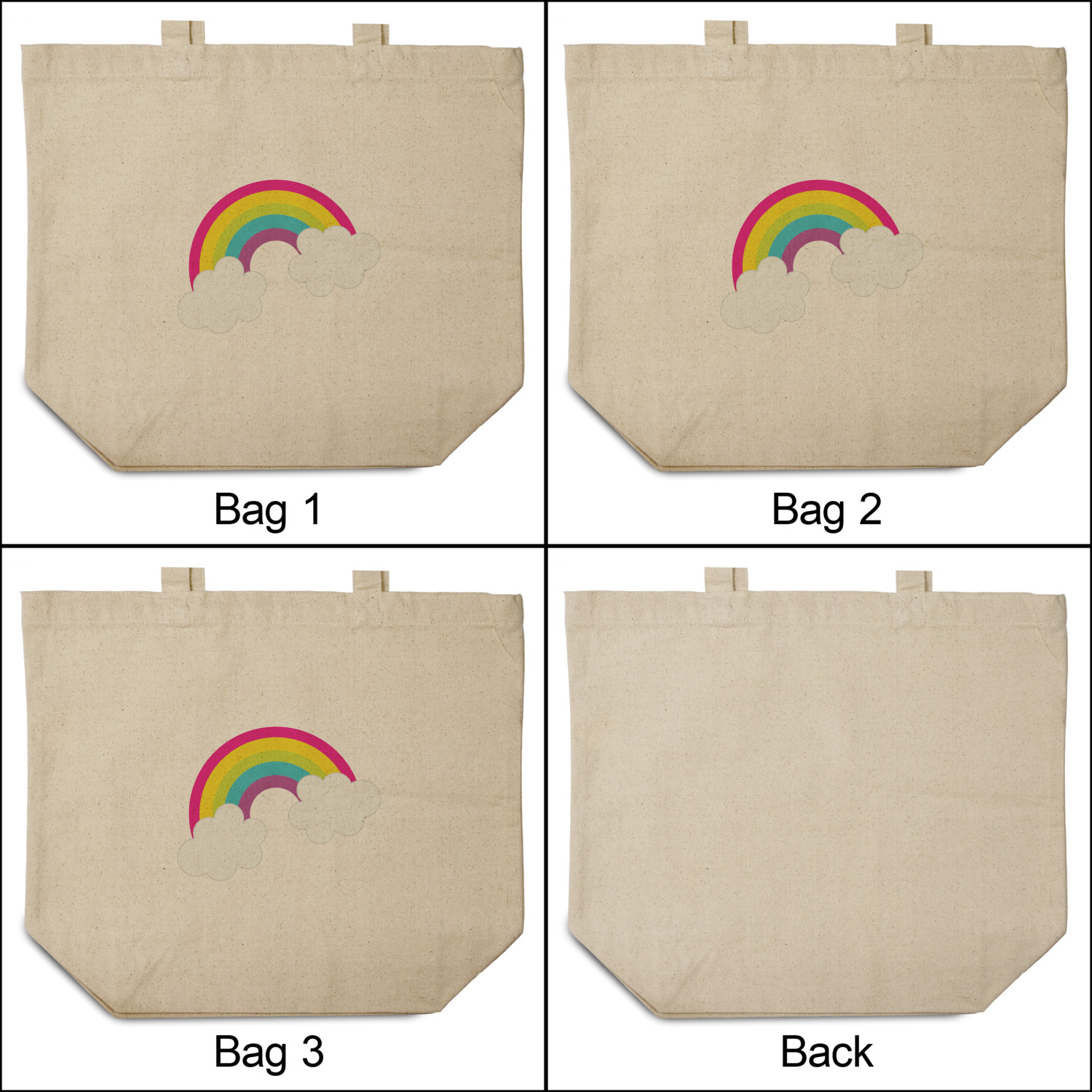 These cotton totes are washable and easy to care for, and they can be folded flat for storage. Your artwork, logo, or photo is printed in full color directly on the cotton tote in the front.