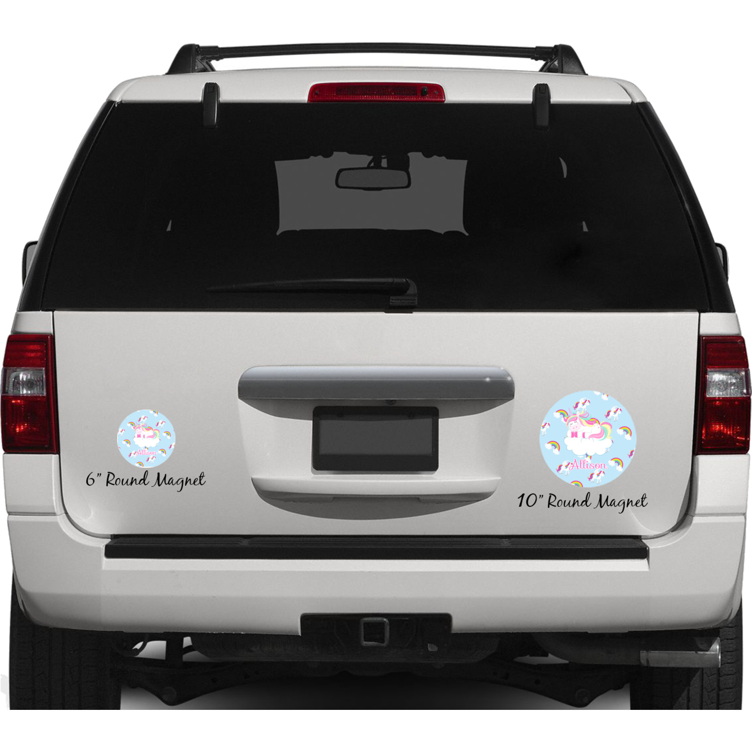 Your personalized car magnets are available for purchase in two shapes and two sizes. We carry round and square editions; each shape can either be 6 by 6 inches, or 10 by 10 inches, depending on your needs. Both versions are 1 millimeter thick, which is considered, within the industry, as the ideal thickness for automobile magnets. The magnetic car decals will adhere to any smooth, metal surface of your cars body, such as the trunk door or a side panel. However, please note that some vehicles are constructed from fiberglass bodies, which prevents the adhesion of anything magnetic. We advise that you test your vehicle before purchasing these magnets.