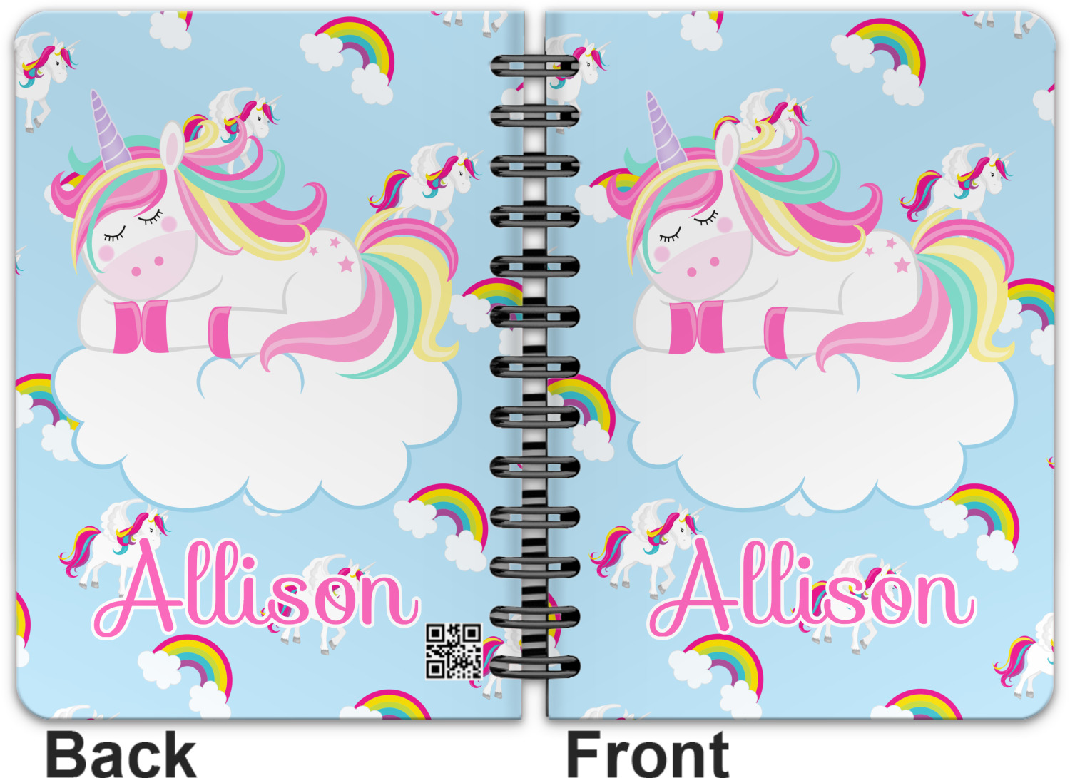 This spiral notebook includes 75 sheets of thick, ruled paper. The front and back of this custom notebook is made of a robust, laminate, plastic covering. We print your personalization on these two panels, underneath a glossy finish, which emphasizes the colors of your design. The two panels and the sheets of paper are held together by a sturdy, black coil. The paper within your bound notebook is perforated for easy, clean tearing.